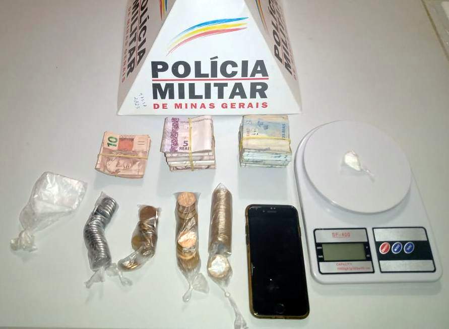 Durante as buscas, foram localizados um papelote de cocaína, balança de precisão, R$1.139,00 e diversos materiais para embalar os entorpecentes.