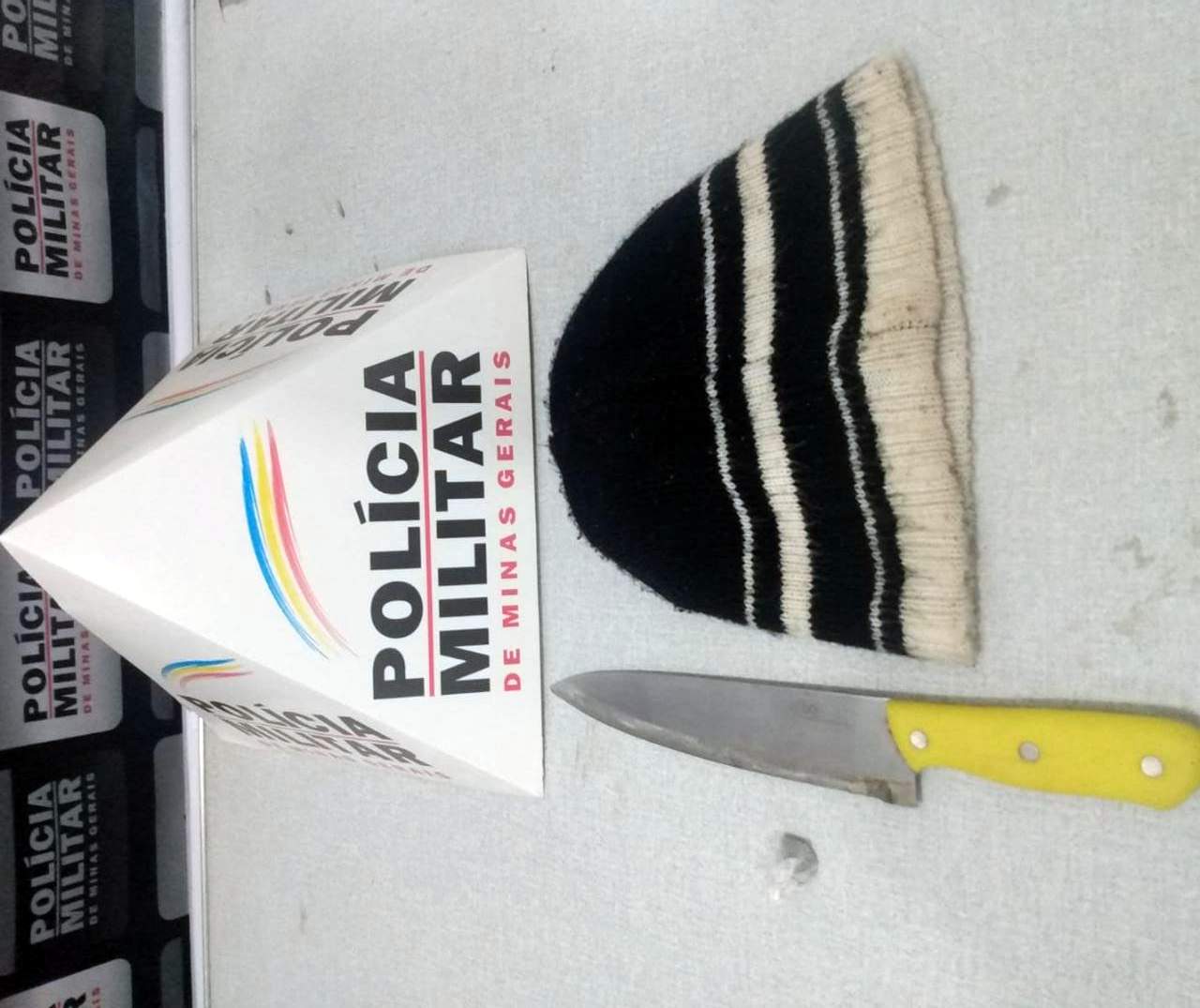 Policiais fizeram rastreamento e o rapaz foi abordado no bairro Santa Luzia. Estava com a faca utilizada na ação, uma touca preta com listras brancas e uma bucha de maconha.