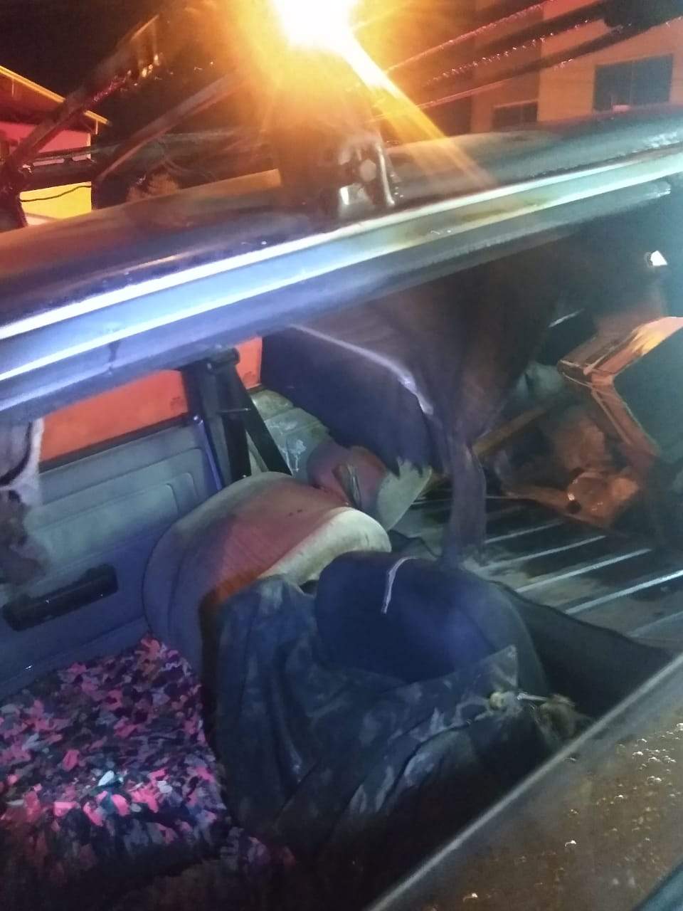 A equipe do Corpo de Bombeiros conseguiu apagar as chamas. Houve danos somente no lado esquerdo: para-choque traseiro, lanterna esquerda traseira, pintura e parte do banco do motorista no veículo. O fogo não atingiu o motor.