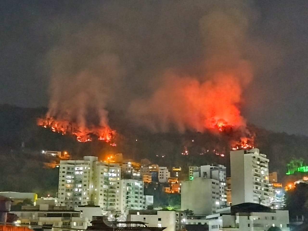 MANHUAÇU (MG) - Depois dos vários registros de focos de incêndio em diferentes bairros de Manhuaçu e na região nos últimos dias, na noite dessa terça-feira (21), os militares do Corpo de Bombeiros tiveram ainda mais trabalho por conta de queimadas criminosas na mata acima dos bairros Colina e Catuaí e também no trecho de Manhuaçu e Reduto.
