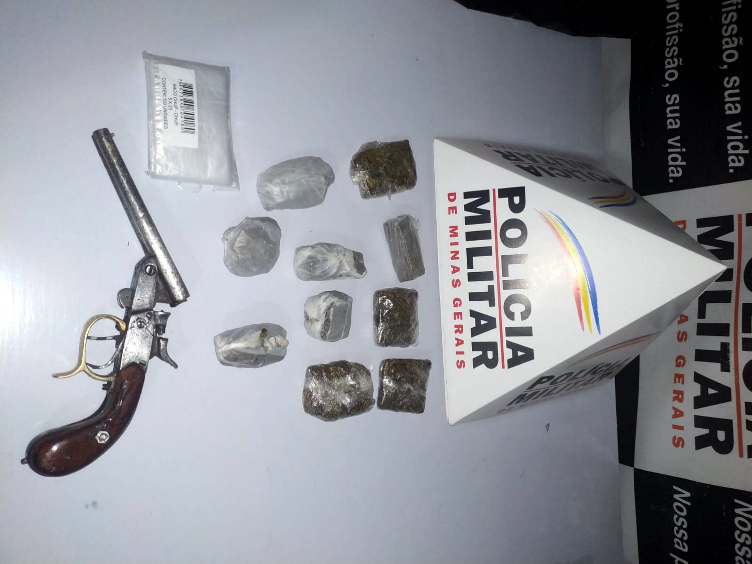 LAJINHA (MG) - A Polícia Militar de Lajinha prendeu um rapaz acusado de tráfico de drogas. Uma garrucha foi apreendida.