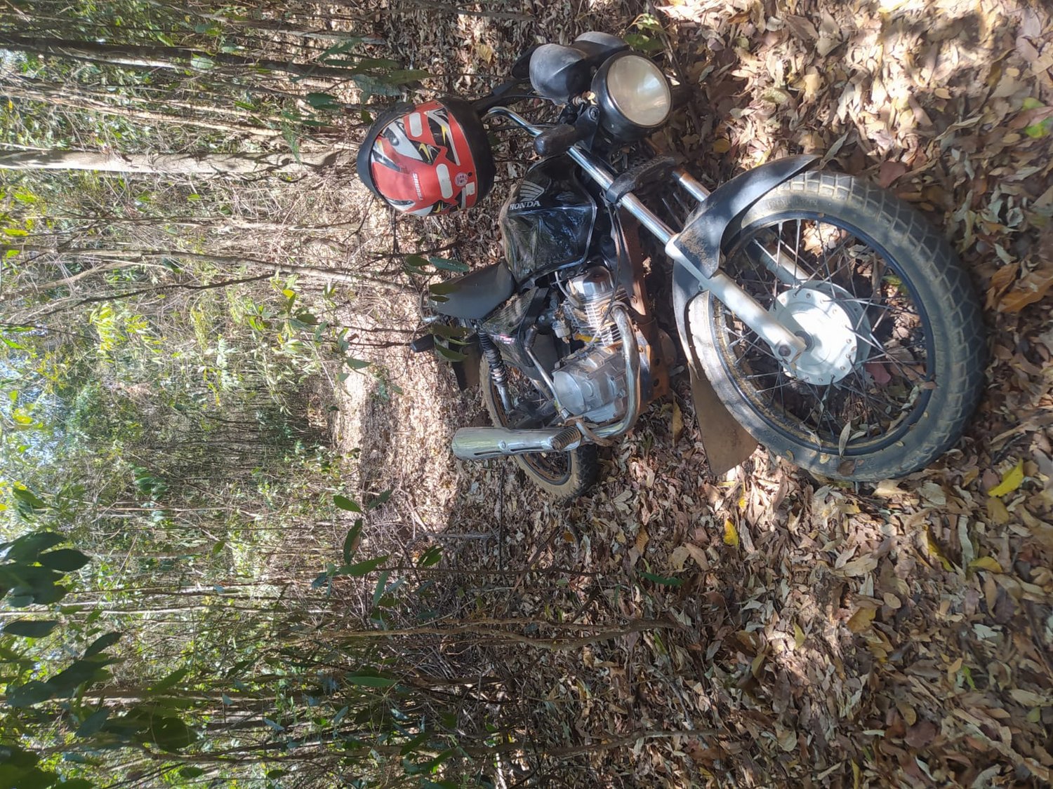 A equipe policial recebeu informação no sábado, 18/09, de que uma motocicleta estava escondida dentro de uma mata.