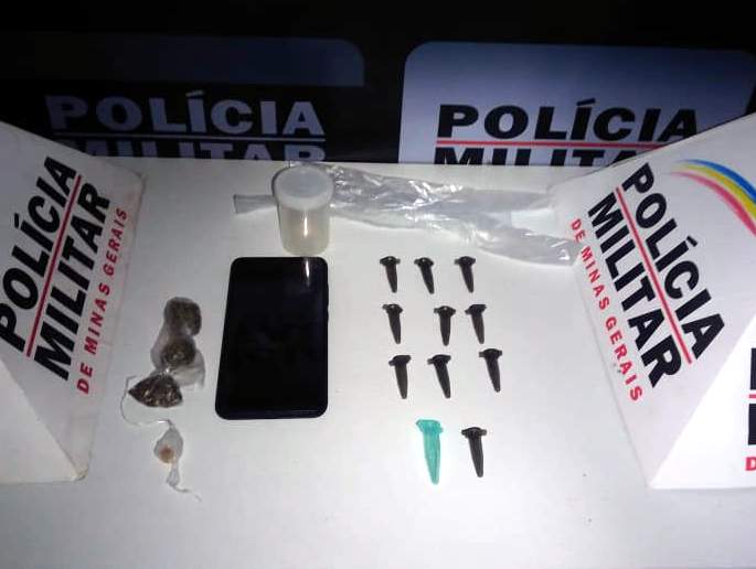 Ao chegar na residência indicada, durante as buscas, foram localizadas três buchas de maconha e uma pedra de crack. Depois disso, o autor passou seu verdadeiro nome e disse estar foragido da penitenciária de Ponte Nova, fato confirmado através de consulta ao sistema informatizado.