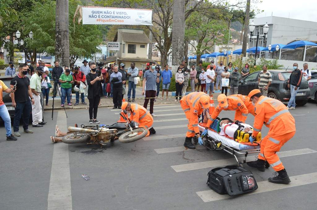 MANHUAÇU (MG) - A Prefeitura de Manhuaçu, através do Departamento Municipal de Trânsito, participou de simulação de acidente, ocorrida na manhã desta sexta-feira (24). As atividades foram realizadas em frente à Matriz de São Lourenço e fazem parte das mobilizações em decorrência da Semana Nacional do Trânsito, que compreende de 18 a 25 de setembro. Corpo de Bombeiros e Polícia Militar são parceiras neste projeto.