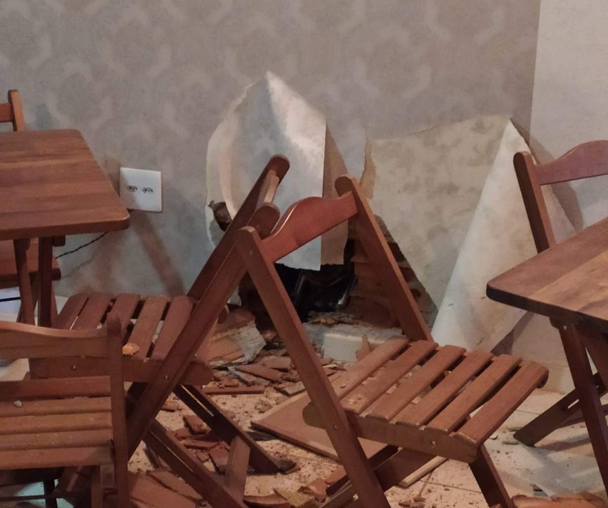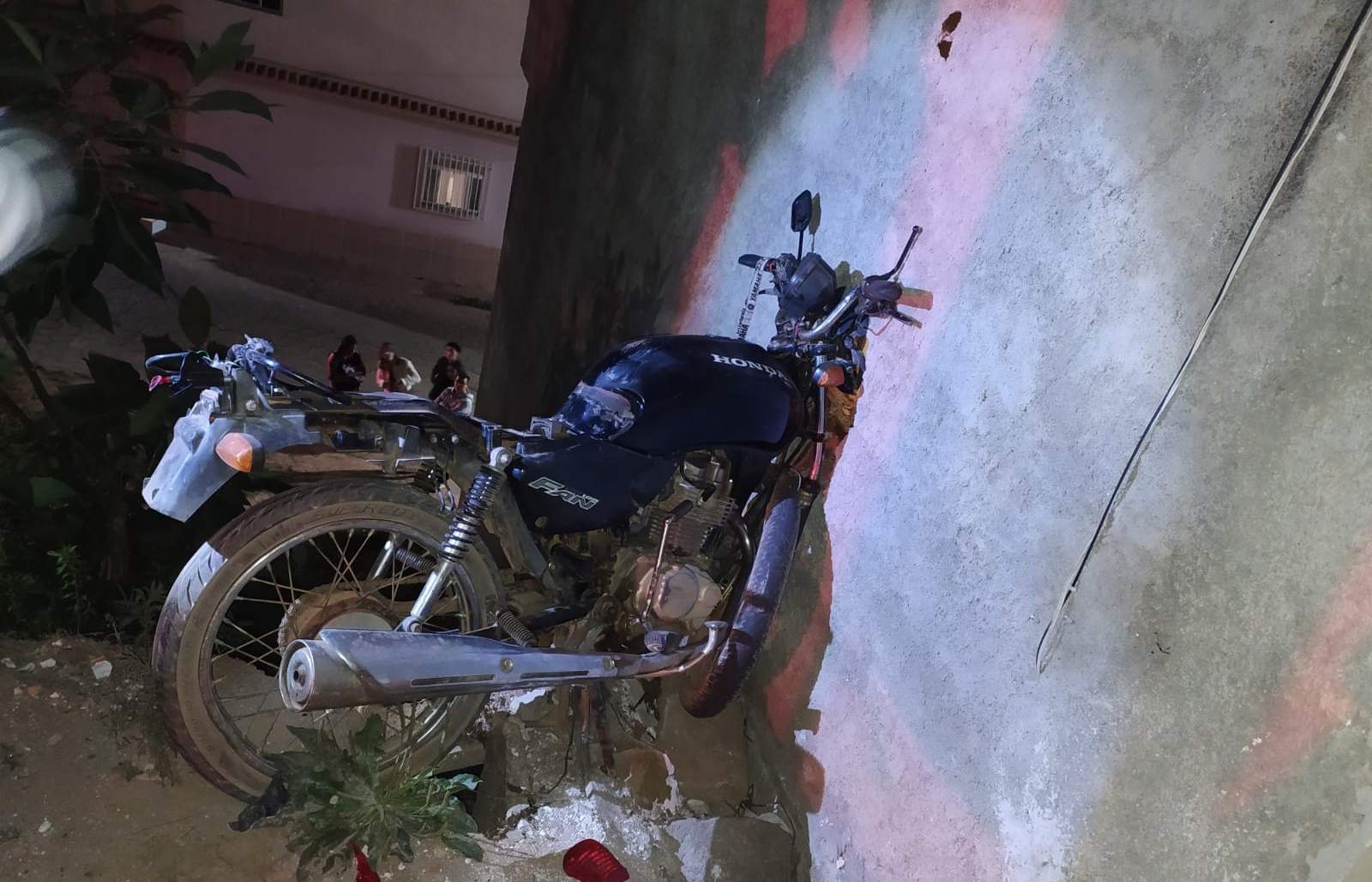 A moto ficou presa na parede do bar, enquanto o piloto caiu um pouco abaixo, num barranco existente no local.