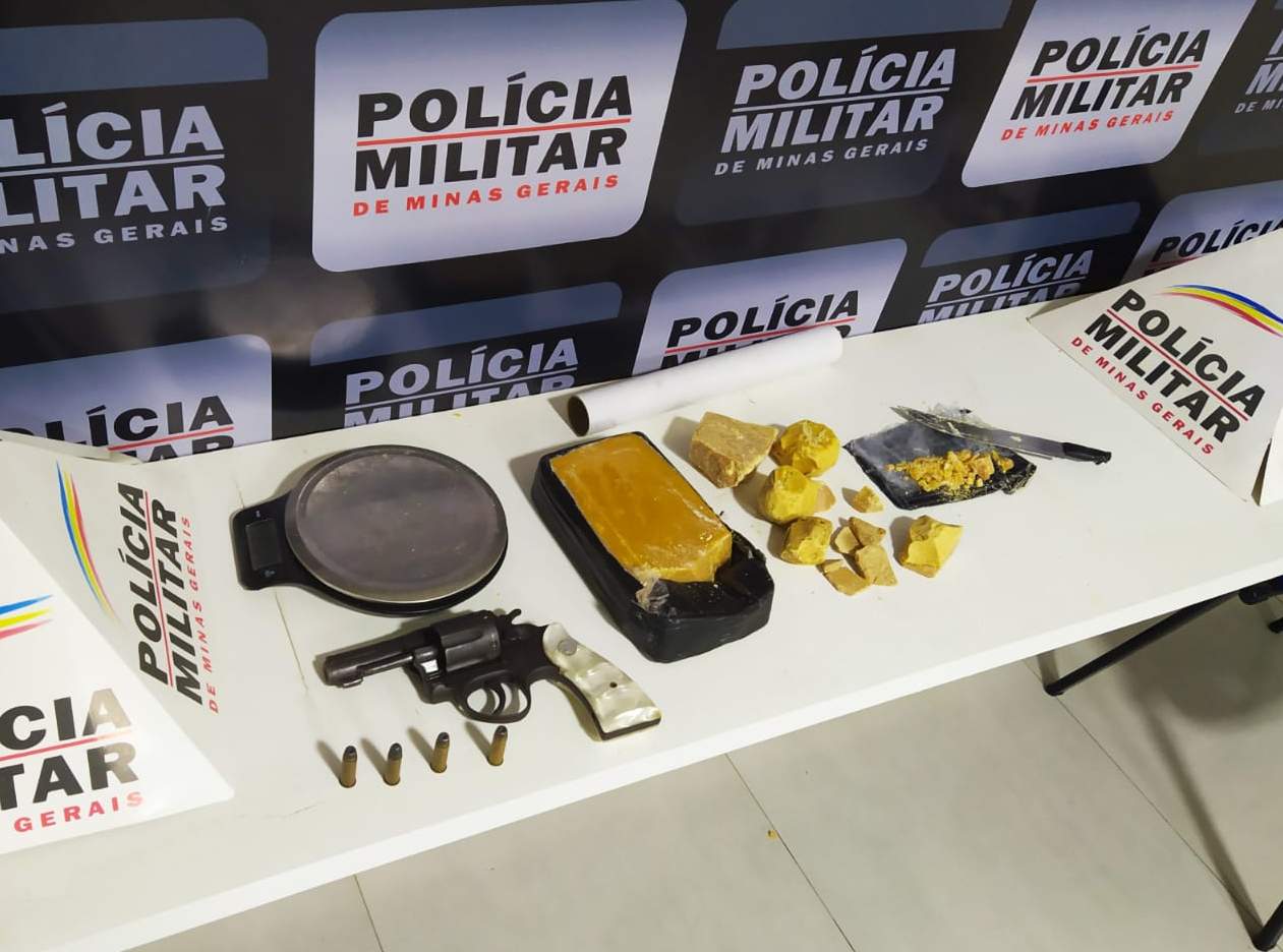 REDUTO (MG) - Policiais militares de Reduto e Manhuaçu apreenderam arma e drogas após abordagem a um veículo. O carro foi alcançado na BR-262, após fugir da abordagem da PM.