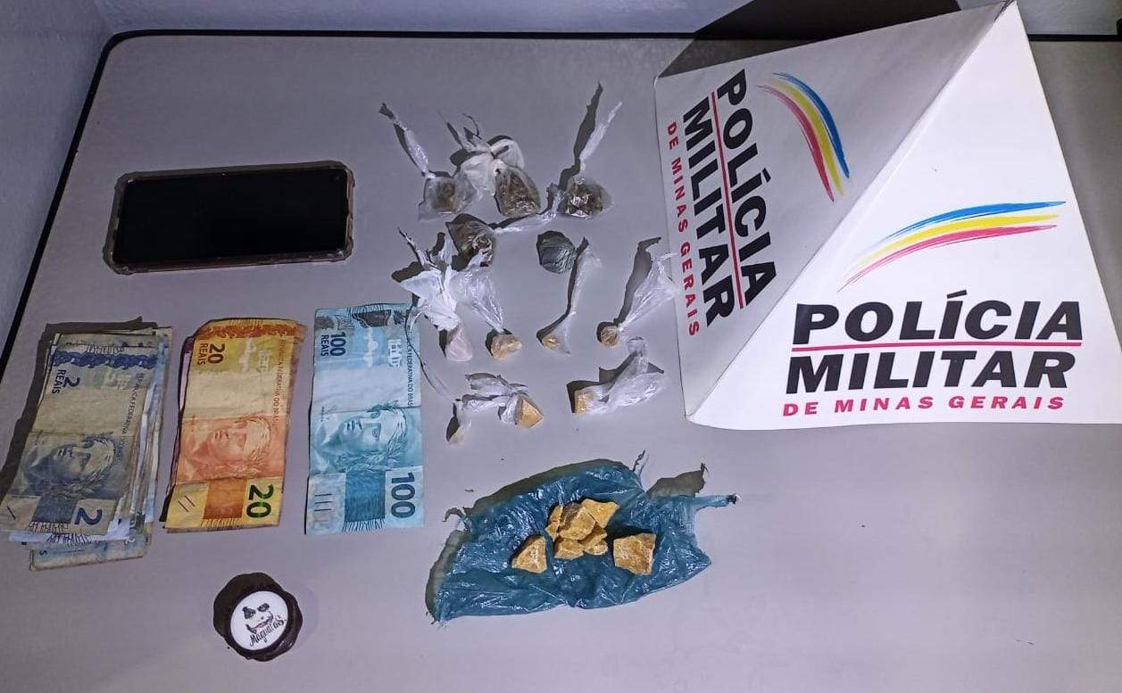 ESPERA FELIZ (MG) - Policiais militares apreenderam drogas e dinheiro em Espera Feliz, nesta terça-feira, 12/10. Dois envolvidos em tráfico de 18 e 25 anos foram presos.