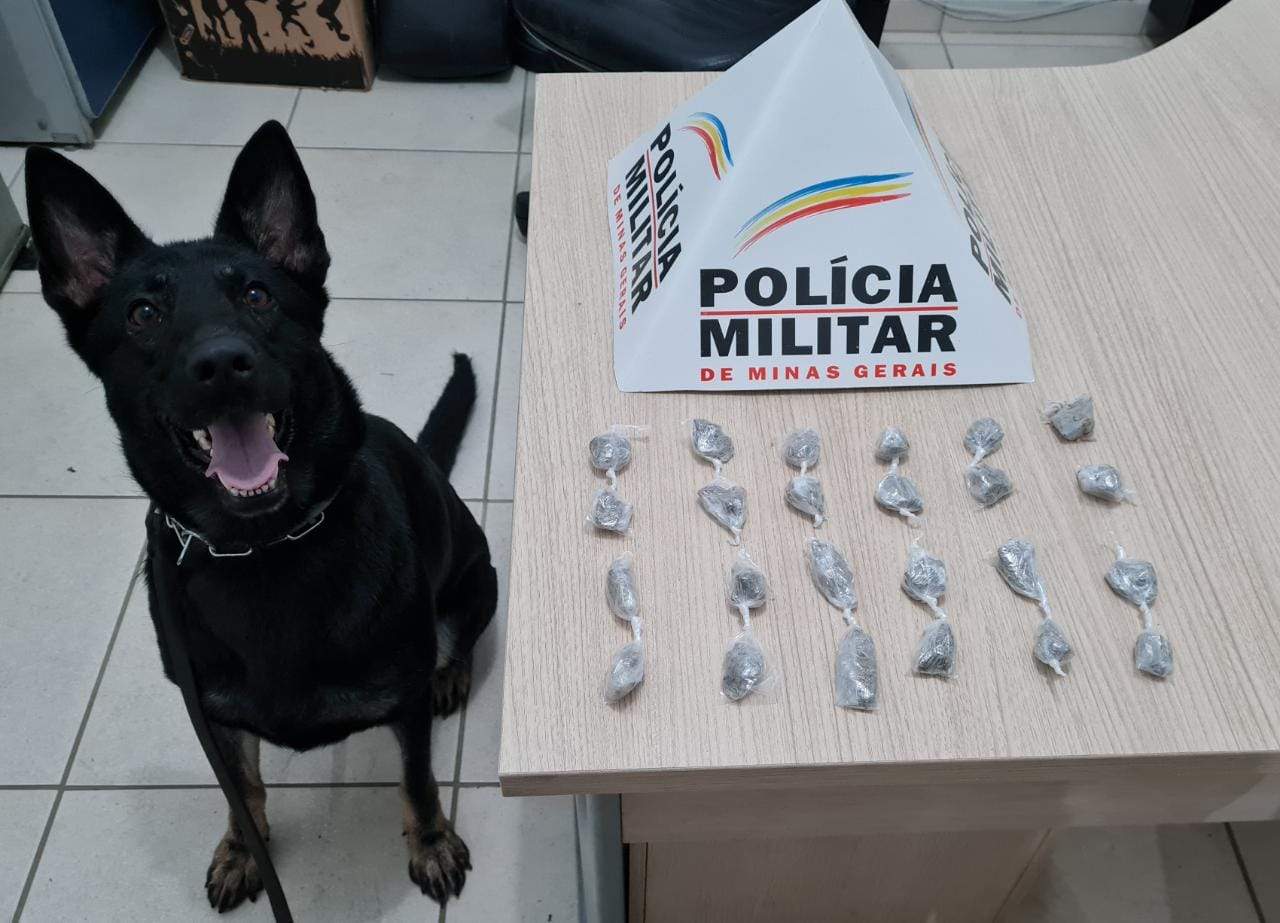Com a cadela de faro Kacau, a PM encontrou 24 buchas de maconha.