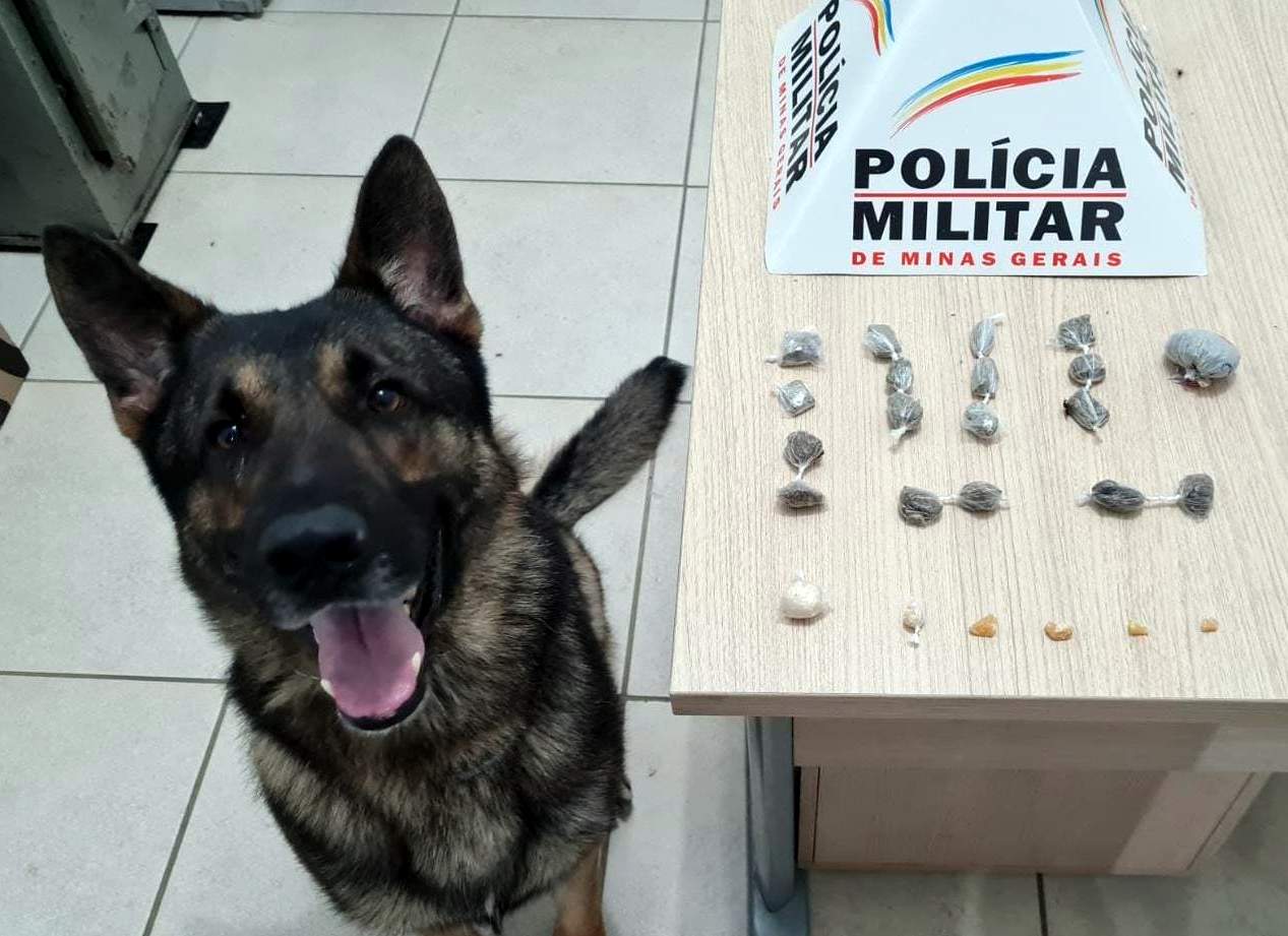 Durante verificação de uma denúncia, na Rua Zequinha Campos, bairro Santa Luzia, foi aplicado o cão farejador Aquiles. Ele localizou 18 buchas de maconha e 06 pedras de crack.