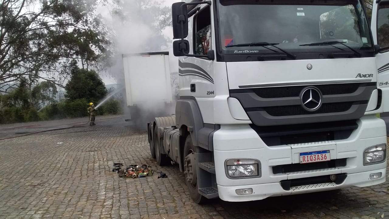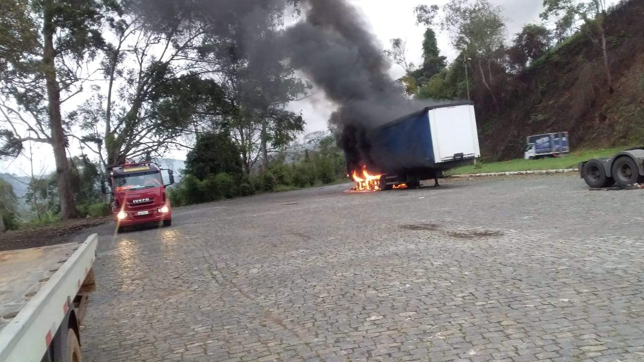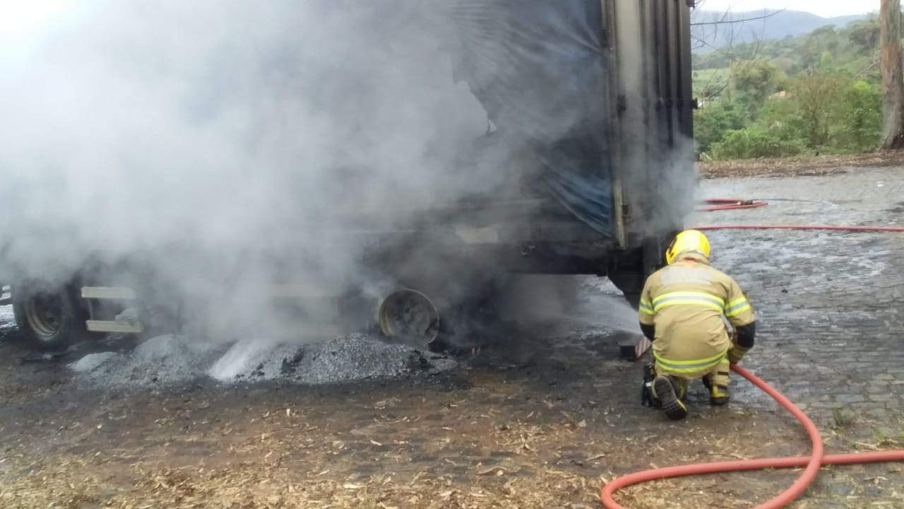 A equipe dos Bombeiros conseguiu extinguir o fogo. A princípio, o incêndio teve início nas rodas traseiras do semirreboque, atingindo parte da carroceria.