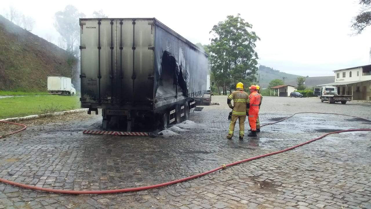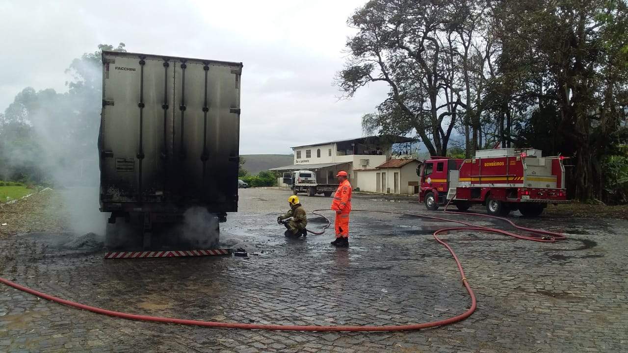 SÃO JOÃO DO MANHUAÇU (MG) - O Corpo de Bombeiros de Manhuaçu controlou o incêndio numa carreta no pátio do posto de combustíveis Recreio, em São João do Manhuaçu, por volta de 5h30 da madrugada desta terça-feira, 26/10.