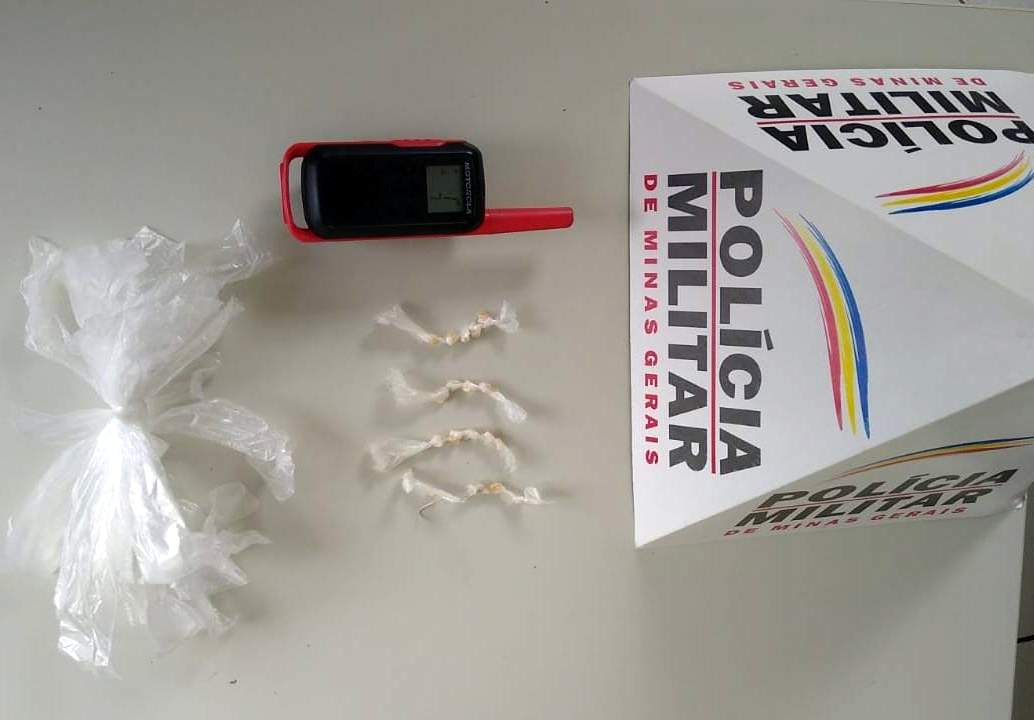 Ao perceber a presença policial o indivíduo tentou fugir, porém foi abordado e durante as buscas foram encontradas com ele 20 pedras de crack, 01 rádio comunicador e material para embalar as drogas.