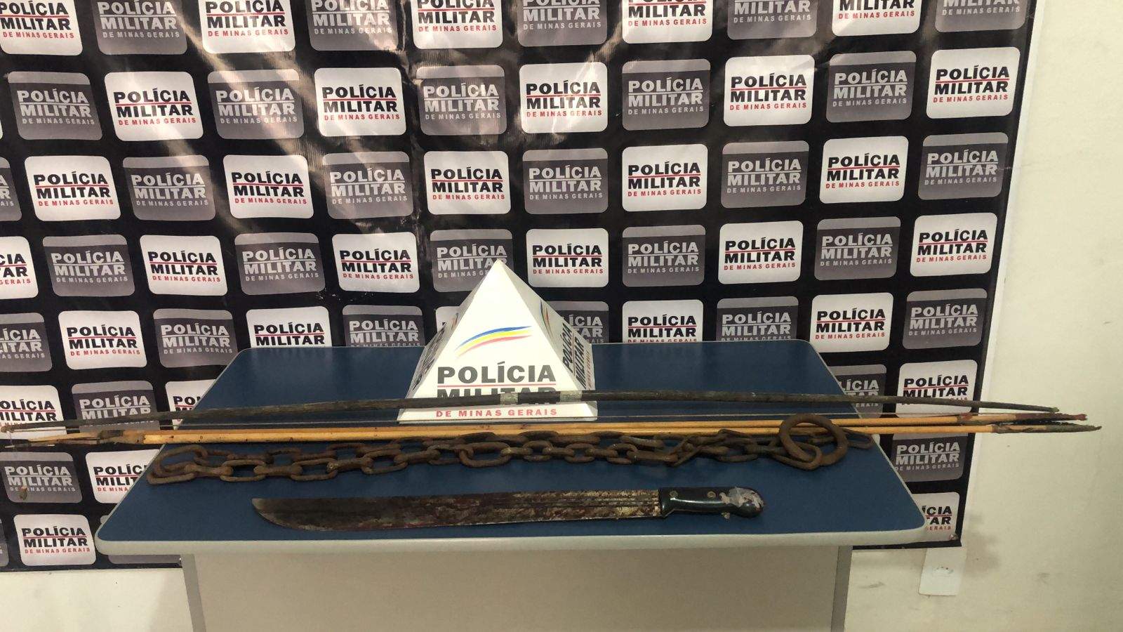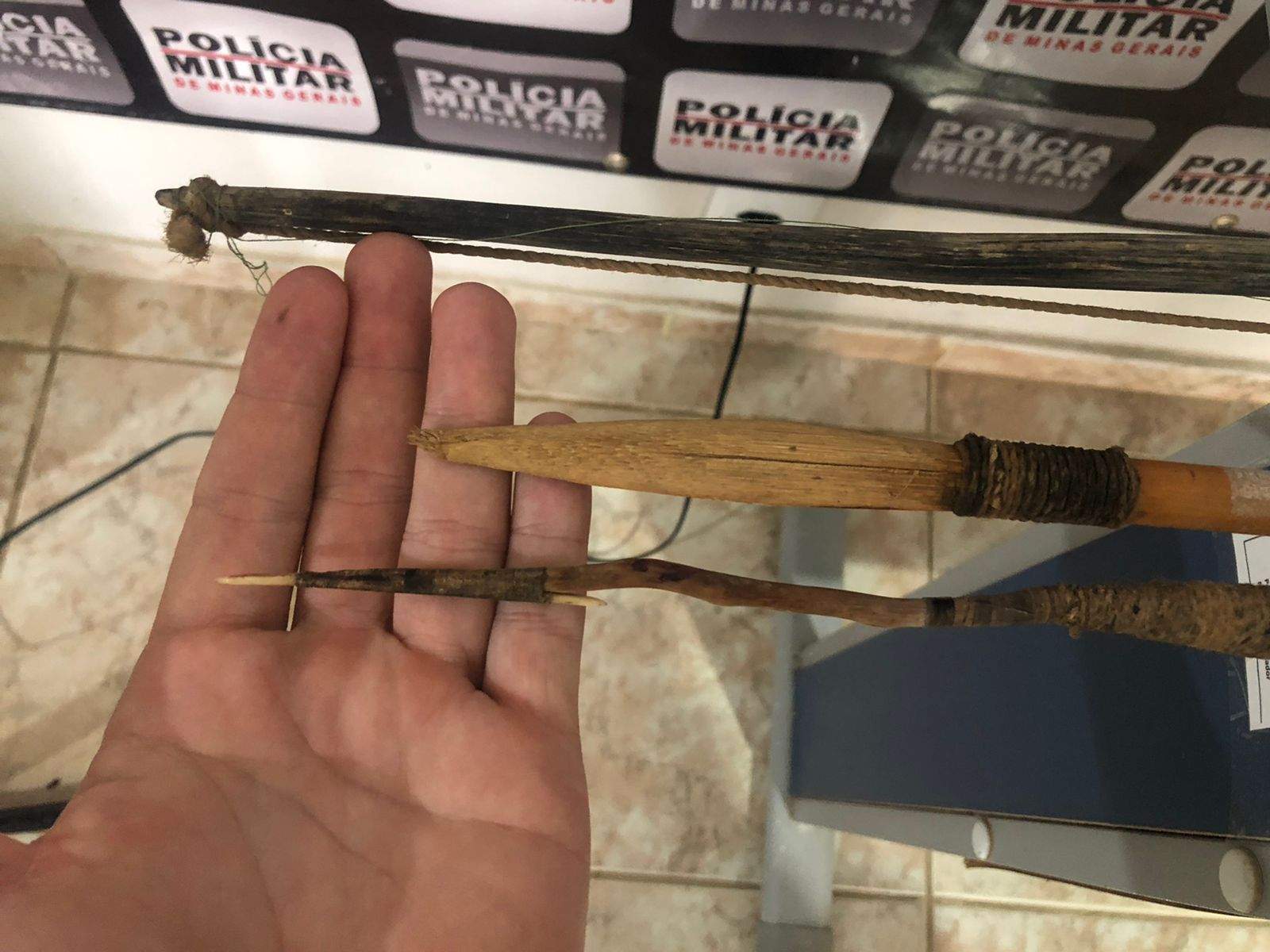 Os policiais foram chamados por populares e motoristas até o trevo de acesso ao município de Santa Margarida. O homem caminhava portando uma corrente, um facão, arco e flecha e já tinha ferido pessoas que passavam pelo local.