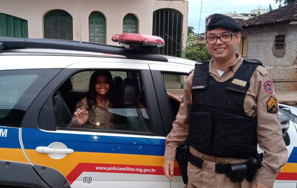 Acompanhado da mãe, Sílvia Rodrigues, ele foi até o quartel da PMMG e foi recebido pelo Sargento Wanderson. Ele conversou com os policiais, conheceu as instalações e ainda teve direito a um passeio na viatura.
