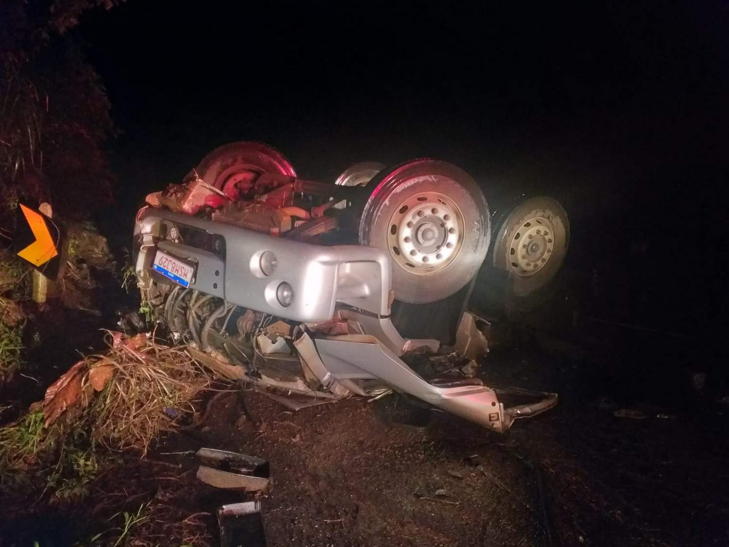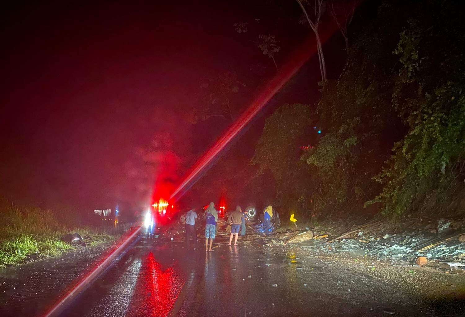 Equipes do Corpo de Bombeiros de Manhuaçu foram acionados por conta do capotamento do caminhão. O veículo tombou e fechou as duas pistas, na curva, próximo da entrada da estrada para Jaguaraí.