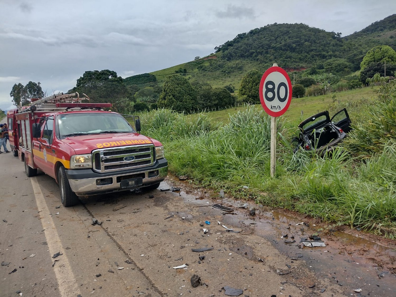 Chegando ao local constataram que Jean Felipe de Souza Lima, 25 anos, condutor do veículo Saveiro, havia sido socorrido por terceiros para o hospital de Abre Campo e estaria com possível fratura no nariz e costela, além de escoriações nos braços.