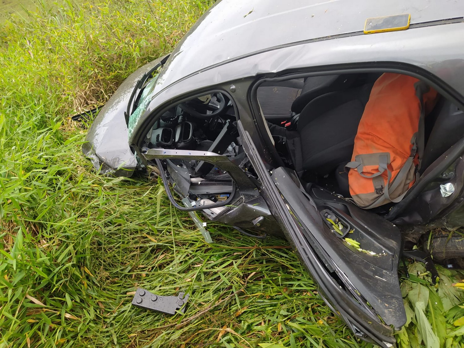 Já a vítima Paulo Veronez Júnior, condutor do veículo Fiat Argo, encontrava-se no interior do veículo, consciente, não estava preso às ferragens, porém estava com várias fraturas. A equipe verificou que ele estava com dificuldade respiratória e dor no tórax, além de sinais de hemorragia interna.