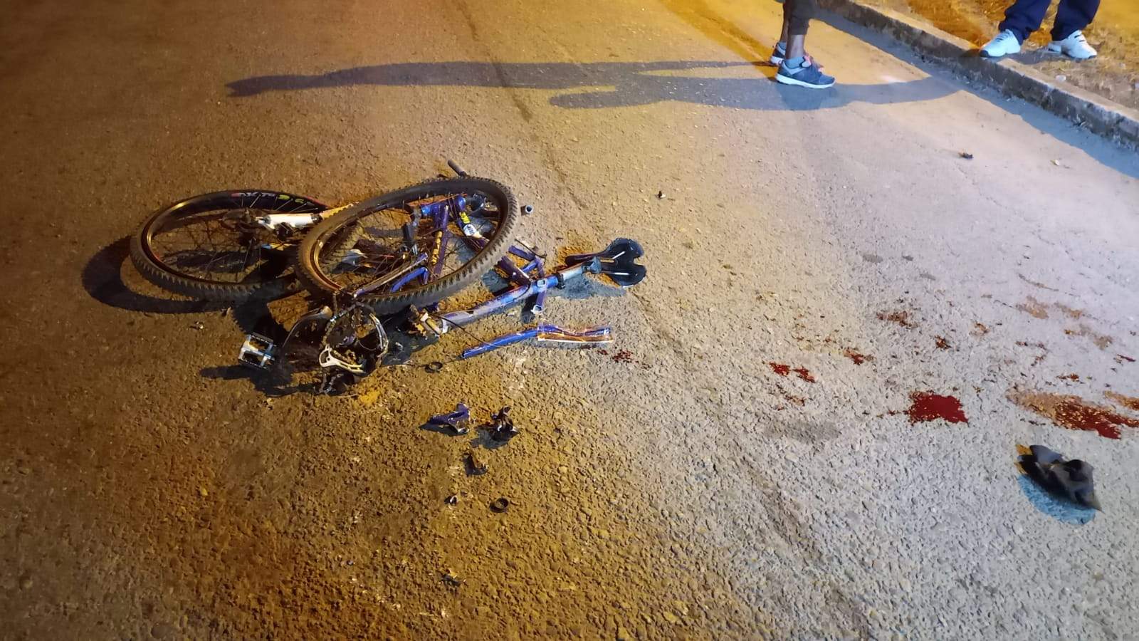 Por muito pouco o caminhão não passava por cima dele. A bicicleta ficou destruída.