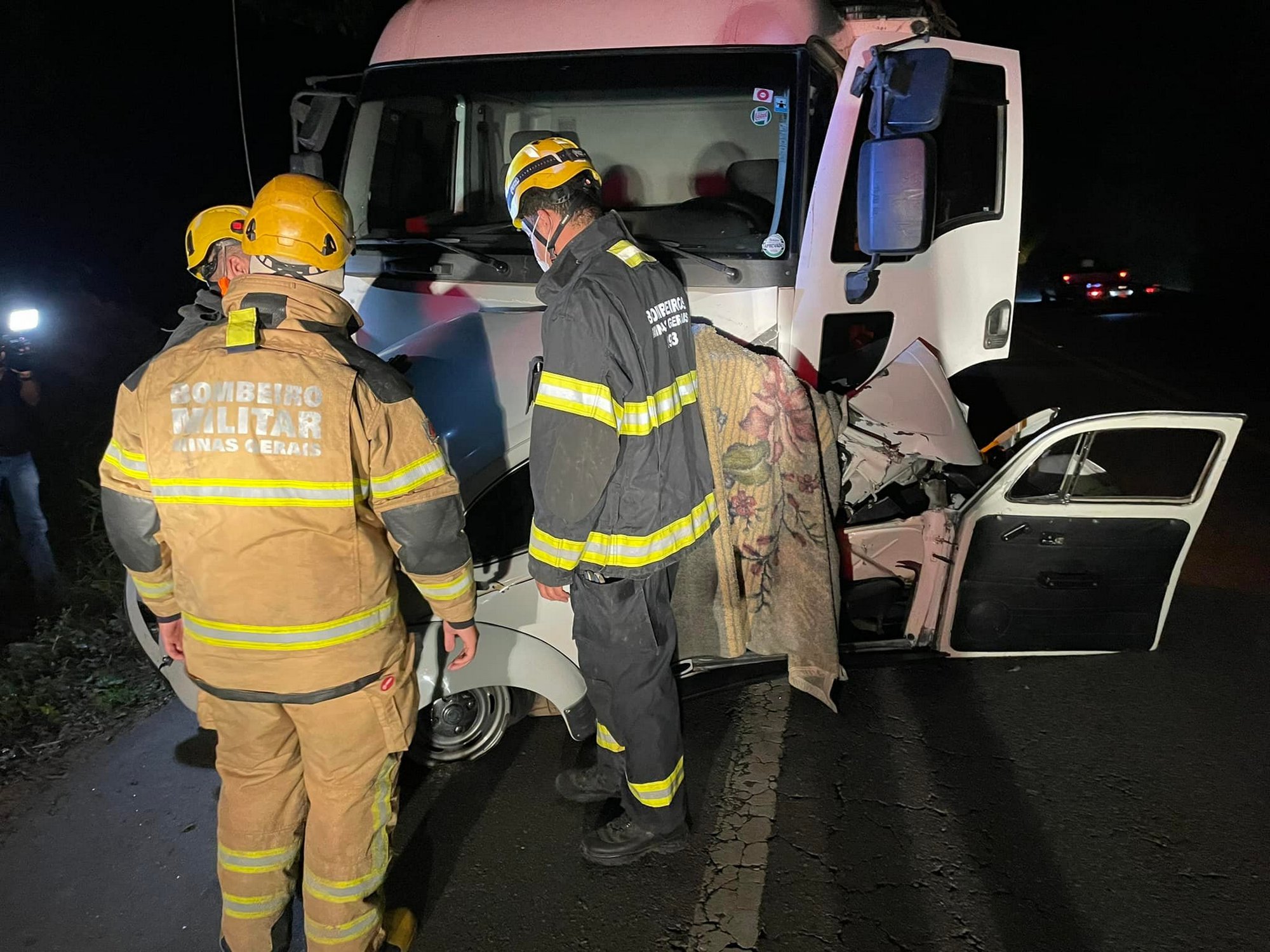 A Polícia Rodoviária Federal sinalizou o local e preservou a cena até a chegada da perícia técnica da Polícia Civil, que iniciou os procedimentos de investigação para a apuração das causas e circunstâncias do acidente. Ao que tudo indica, o caminhão seguia no sentido Inhapim/Dom Cavati e o Fusca no sentido oposto.