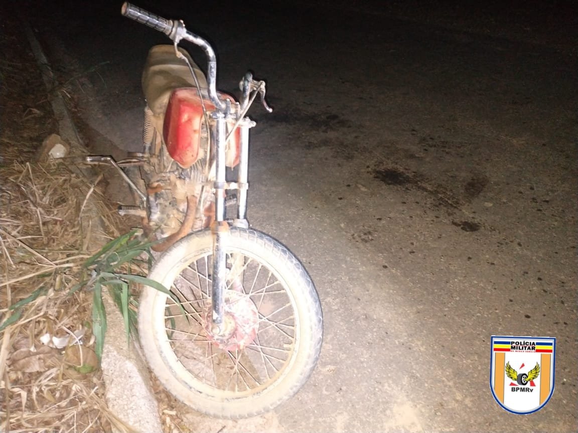 Os policiais notaram que a moto também estava sem a placa, o que motivou a abordagem inicial. Ao verificarem os detalhes de identificação, a numeração de chassi incompleto, numeração de motor não encontrado no sistema e cor alterada.