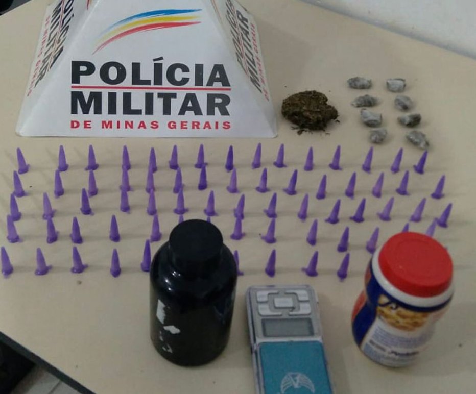 SIMONÉSIA (MG) - Durante o policiamento na 30ª Festa do Trabalhador em Simonésia, na noite desta sexta-feira, 29/04, equipes da Polícia Militar, em conjunto com a equipe de segurança privada do evento, abordaram três jovens, sendo que, durante as buscas pessoais, foram localizados 34 pinos de cocaína e 8 tabletes de maconha, prontos para a venda.