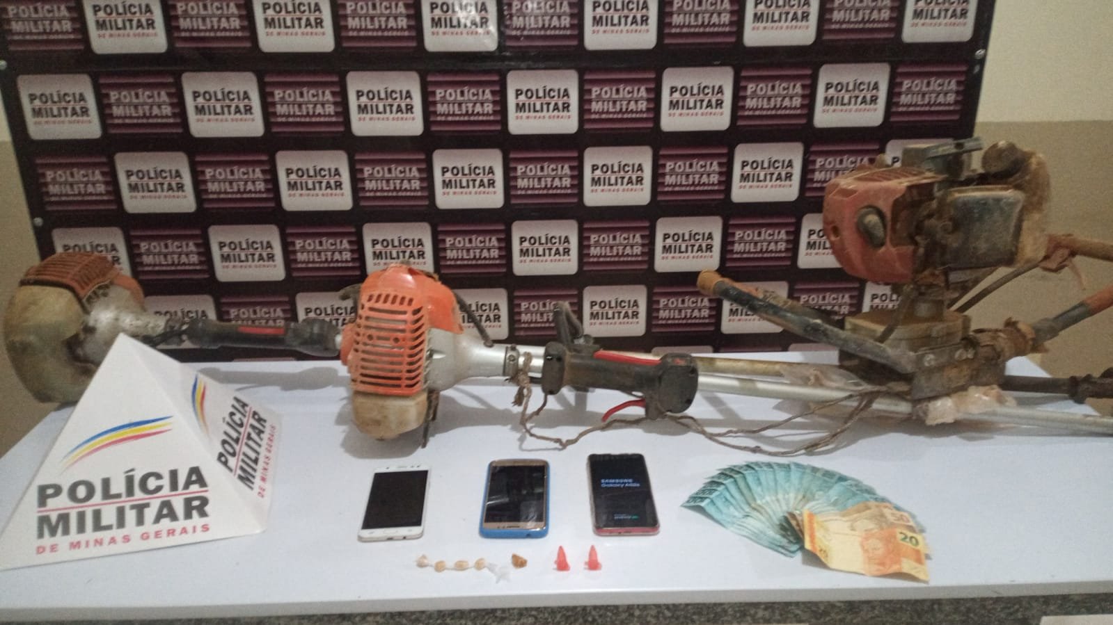 Na residência em contato com a autora, de 33 anos ela confirmou o fato. Durante as buscas na casa foram encontrados ainda 02 pinos de cocaína, 05 pedras de crack, 02 roçadeiras, 01 perfurador de terra, 03 celulares e a quantia de R$ 1.920,00.