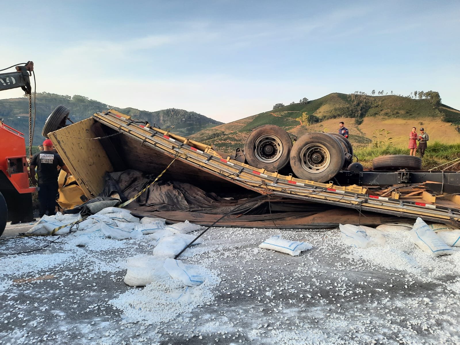 IBATIBA (ES) - Um acidente envolvendo uma carreta e três caminhões interditou totalmente a BR 262, no quilômetro 151 em Ibatiba (ES), na tarde desta quinta-feira (19/05).