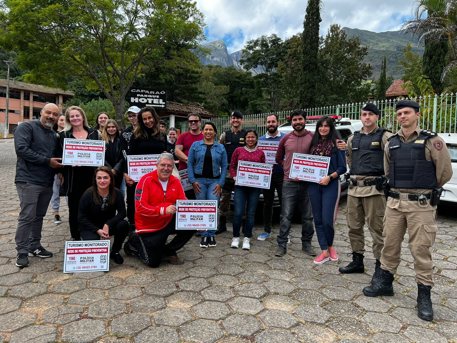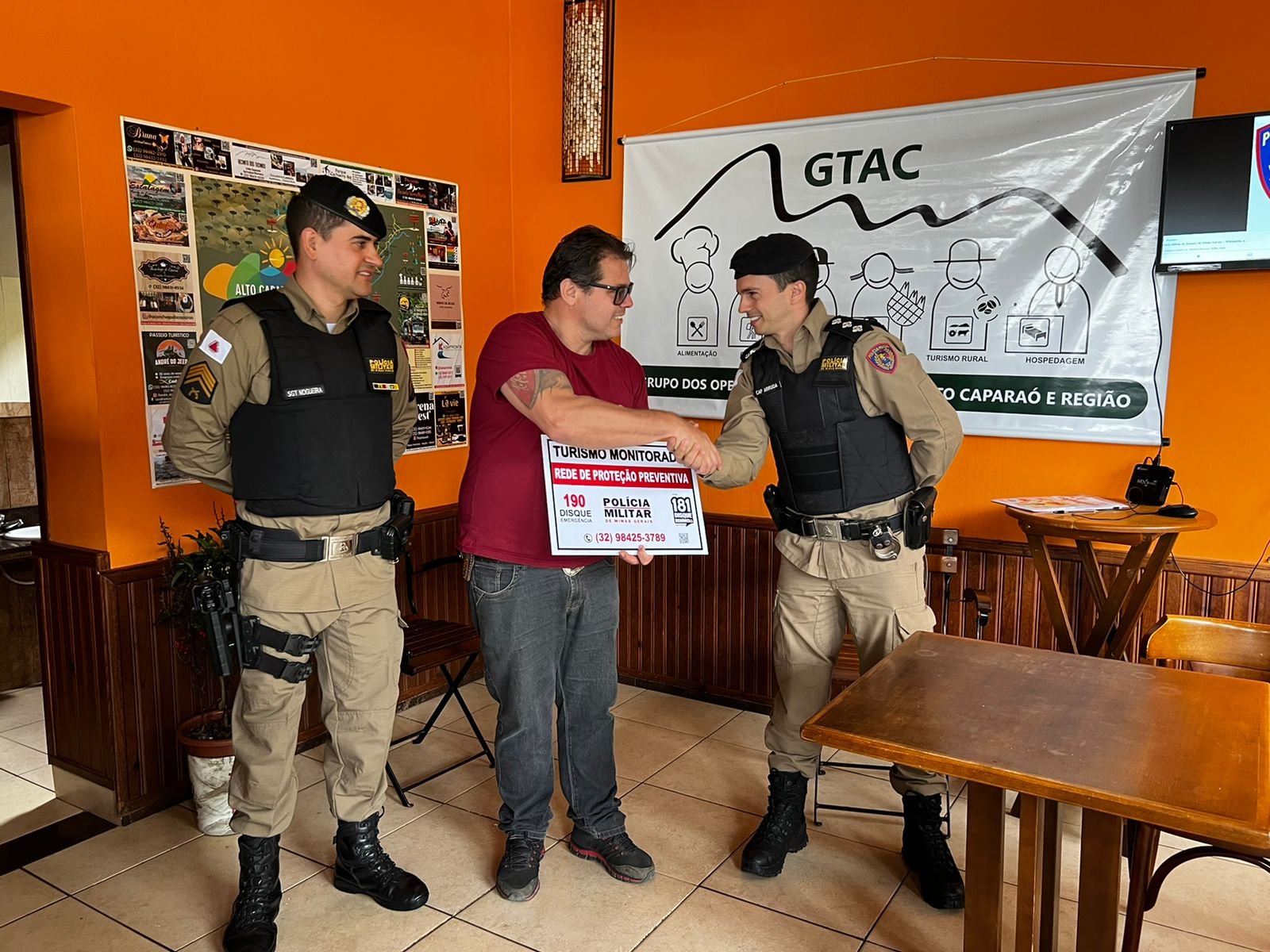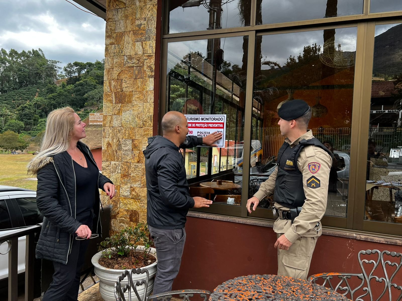 A ação faz parte do Plano de Policiamento Turístico desenvolvido pela Polícia Militar e contou com a presença do Comandante da 29ª Companhia PM, com sede na cidade Manhumirim, de militares do Destacamento de Alto Caparaó, além do Secretário de Turismo do Município Ramiro Horst, comerciantes da Rede de Hotéis e Pousadas e integrantes do Grupo dos Operadores de Turismo de Alto Caparaó e Região - GTAC.