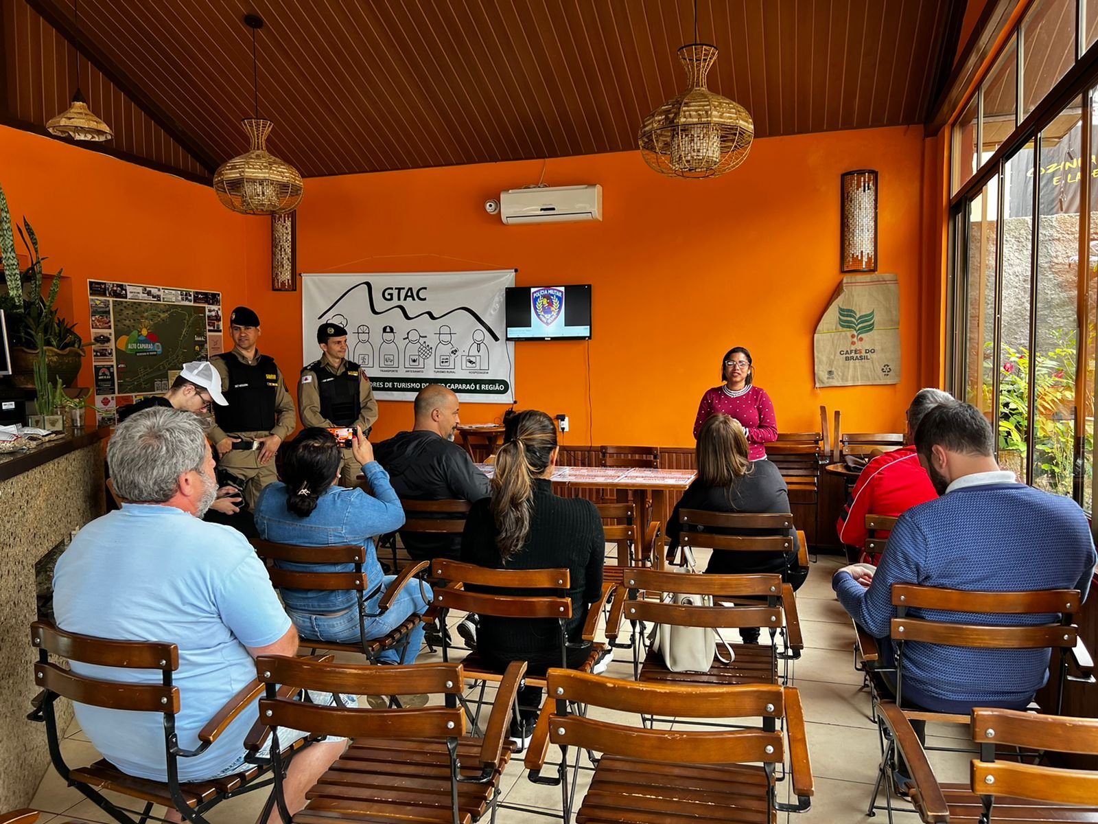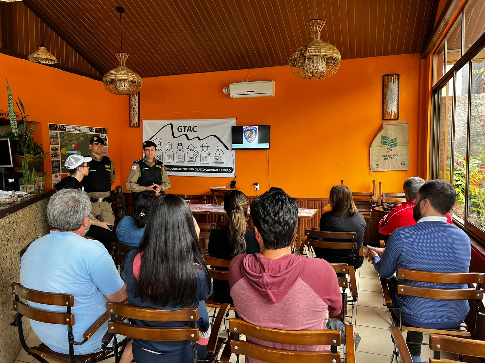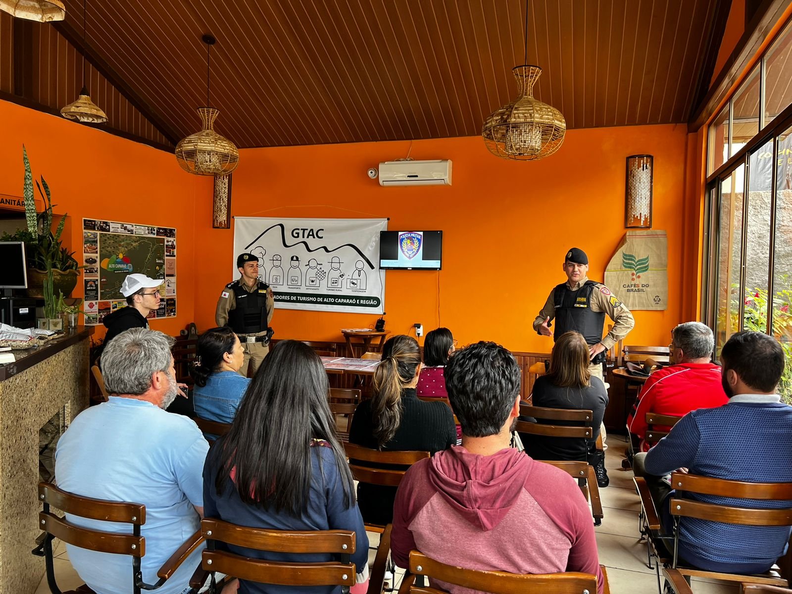 A ação faz parte do Plano de Policiamento Turístico desenvolvido pela Polícia Militar e contou com a presença do Comandante da 29ª Companhia PM, com sede na cidade Manhumirim, de militares do Destacamento de Alto Caparaó, além do Secretário de Turismo do Município Ramiro Horst, comerciantes da Rede de Hotéis e Pousadas e integrantes do Grupo dos Operadores de Turismo de Alto Caparaó e Região - GTAC.
