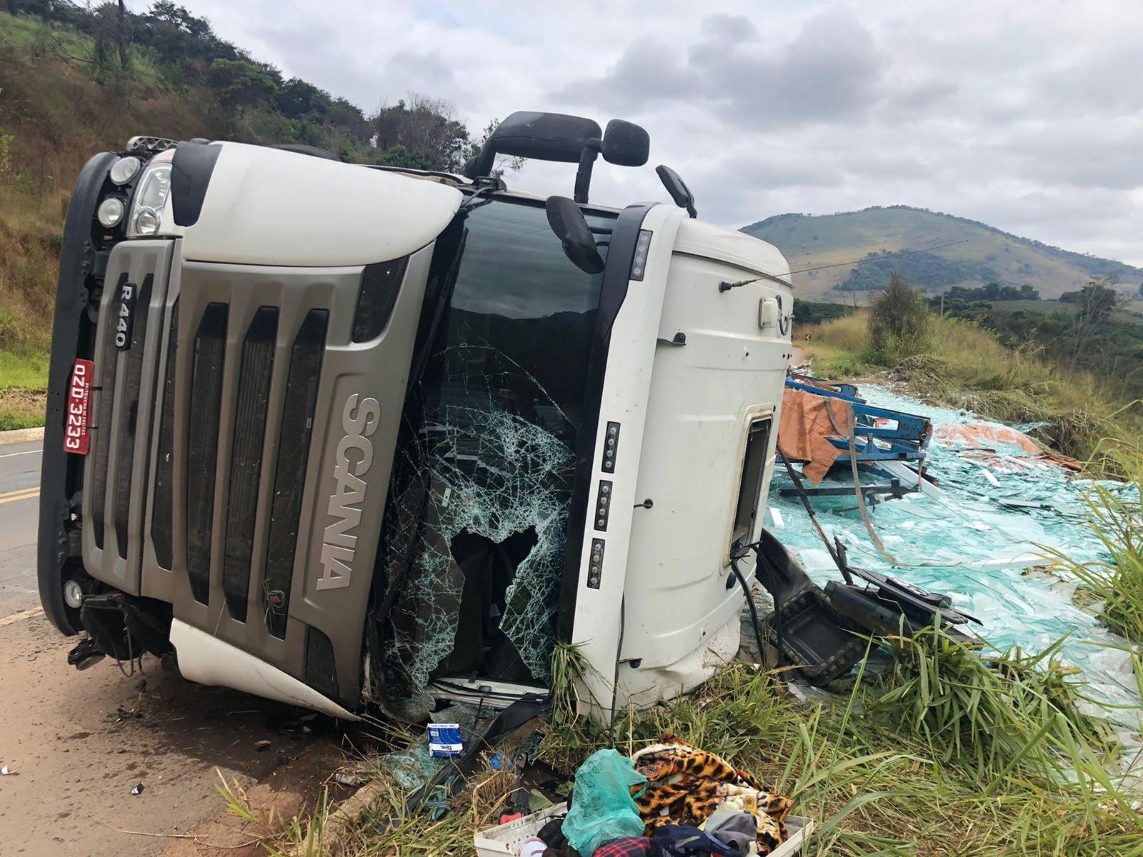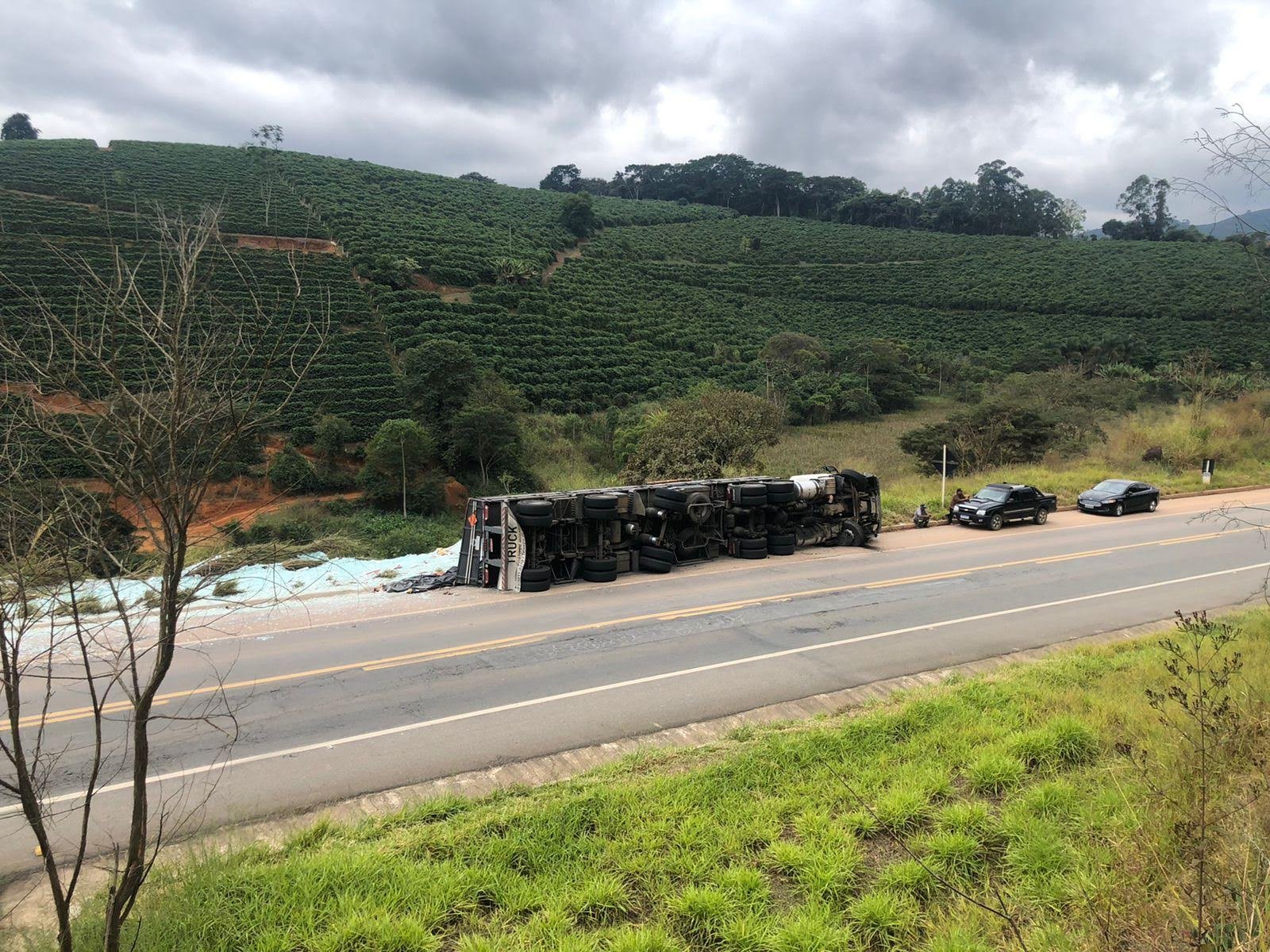 A carreta seguia sentido Realeza – Caratinga. Numa curva, o motorista perdeu o controle da direção e tombou, parando no acostamento da pista contrária. O condutor da carreta foi retirado da cabine através de um buraco feito no para-brisa, com ajuda de outros motoristas que passavam pelo local.