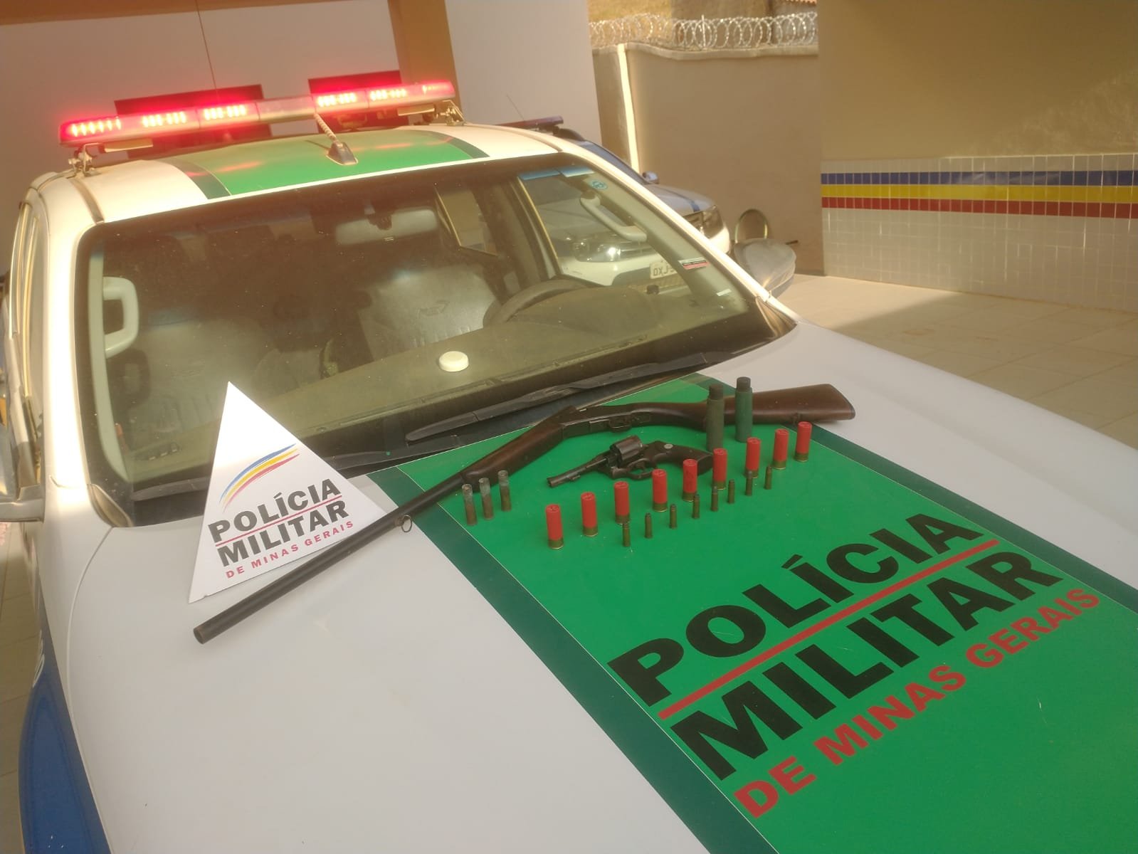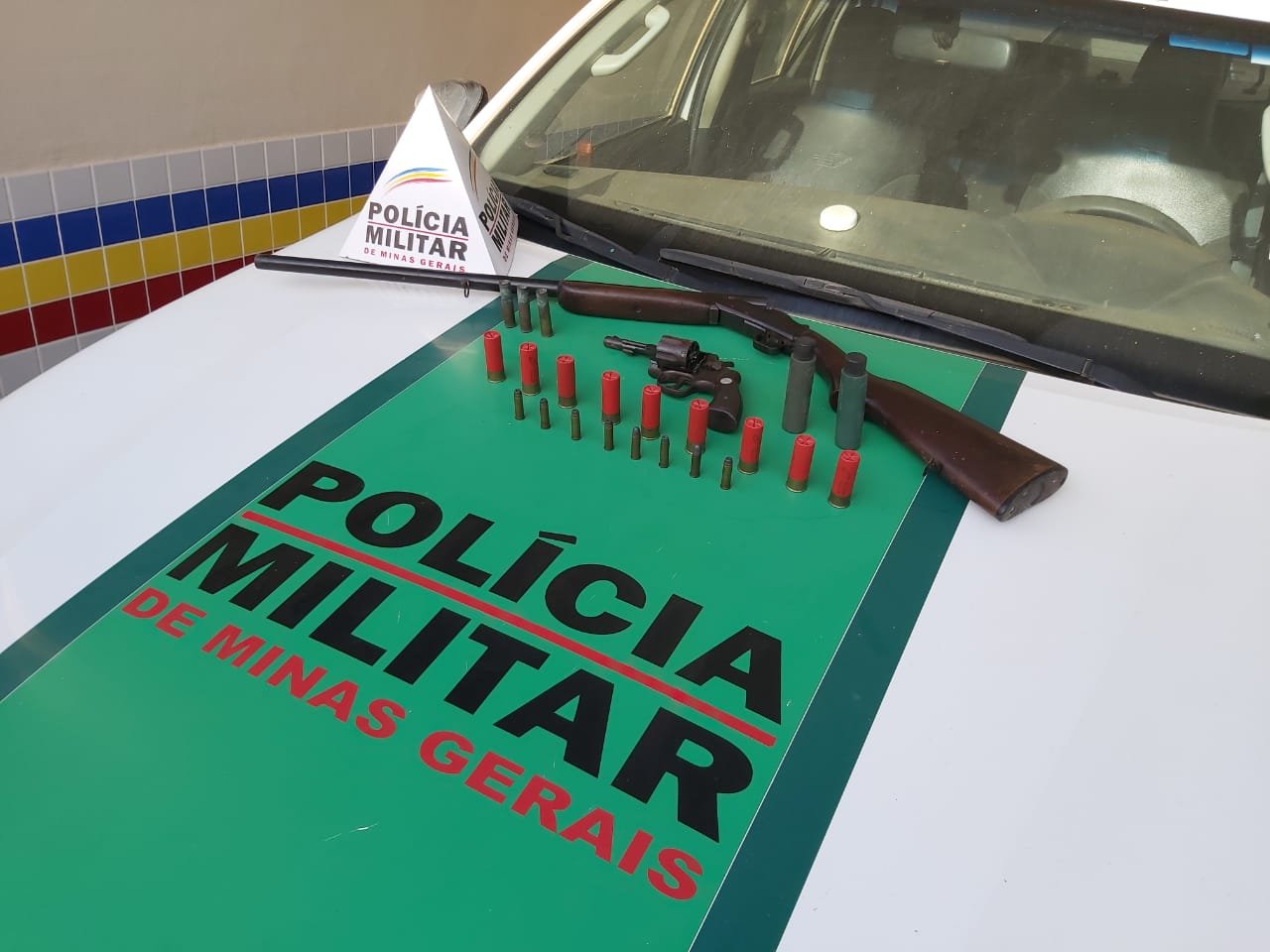 Na ação, autorizada pelo Poder Judiciário, os militares conseguiram apreender uma espingarda calibre 12; um revólver calibre 38; nove cartuchos calibre 12; oito cartuchos calibre 38; pólvora e esferas de chumbo. O autor, que não possuía os registros das armas, foi preso pelo crime de posse ilegal de arma de fogo de uso permitido e encaminhado até a Delegacia de Polícia Civil onde o flagrante foi ratificado.