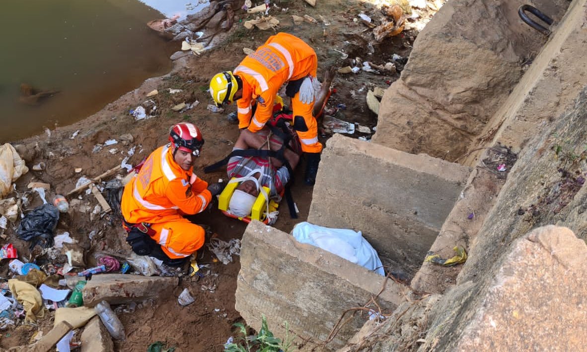 O homem estava confuso e foi resgatado pela equipe do Corpo de Bombeiros. Ele apresentava ferimentos na cabeça e nos braços e pernas.