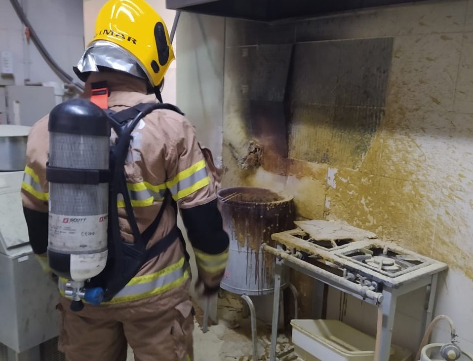 MANHUAÇU (MG) - Uma fritadeira industrial pegou fogo num comércio no bairro Bom Jardim, em Manhuaçu, na tarde desta terça-feira, 07/06.