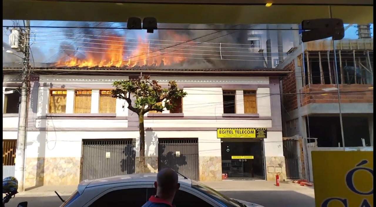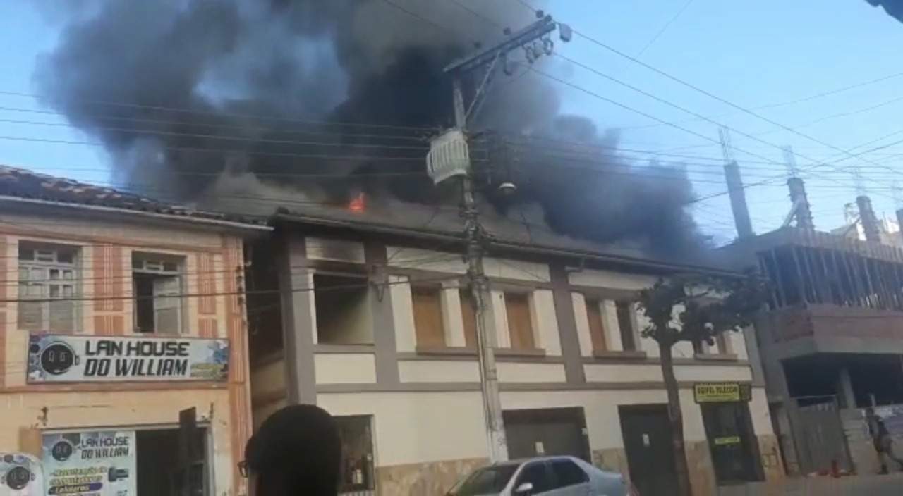 SIMONÉSIA (MG) - A comunidade de Simonésia acompanhou assustada o incêndio que atingiu um antigo casarão na região central da cidade, na tarde desta terça-feira, 14/06.