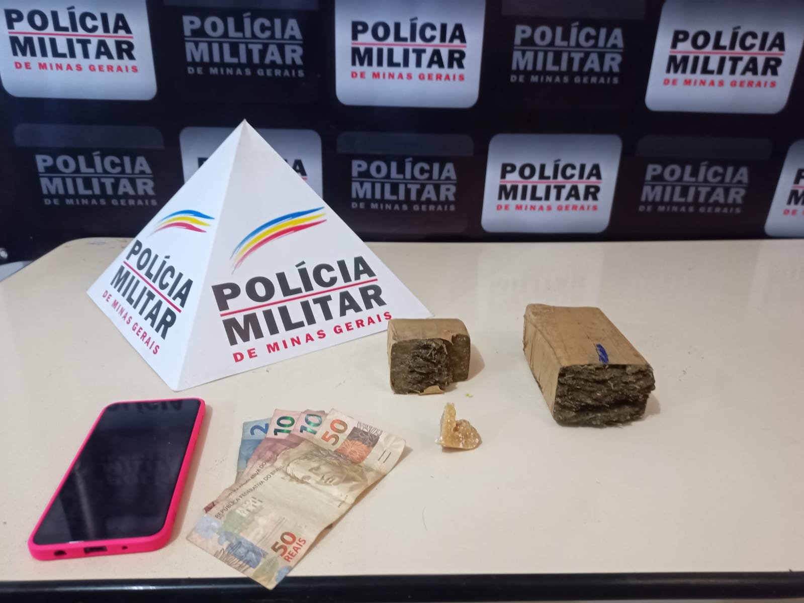 Durante fiscalização na Avenida Fernando Maurílio Lopes, Centro de Reduto, a equipe policial notou um veículo Ônix e decidiu fazer a abordagem. Os militares observaram que o carona colocou uma sacola no assoalho do veículo. Ao ser abordado, ele confessou que eram dele: duas barras de maconha e uma pedra grande de crack, além de dinheiro e um celular.