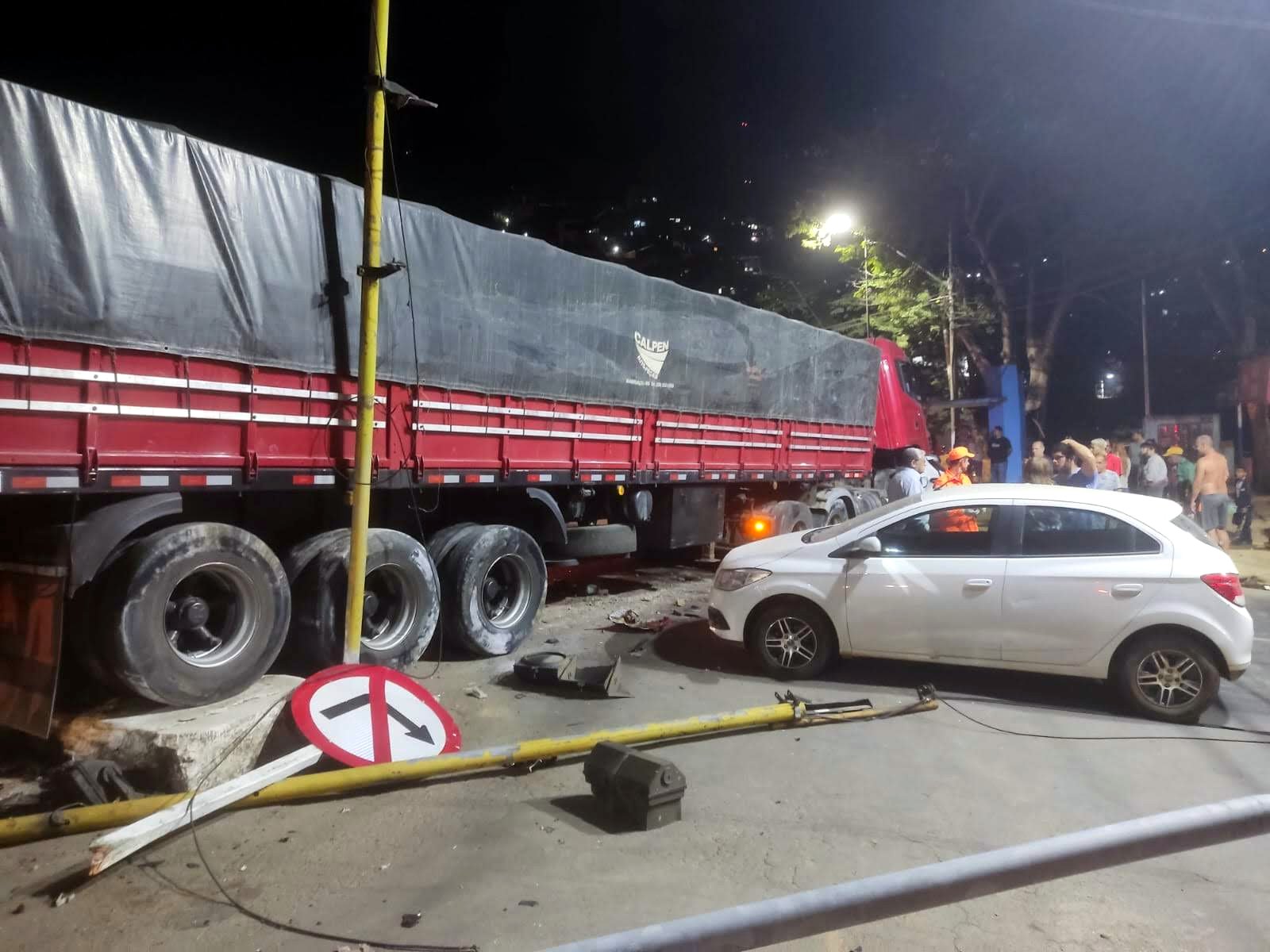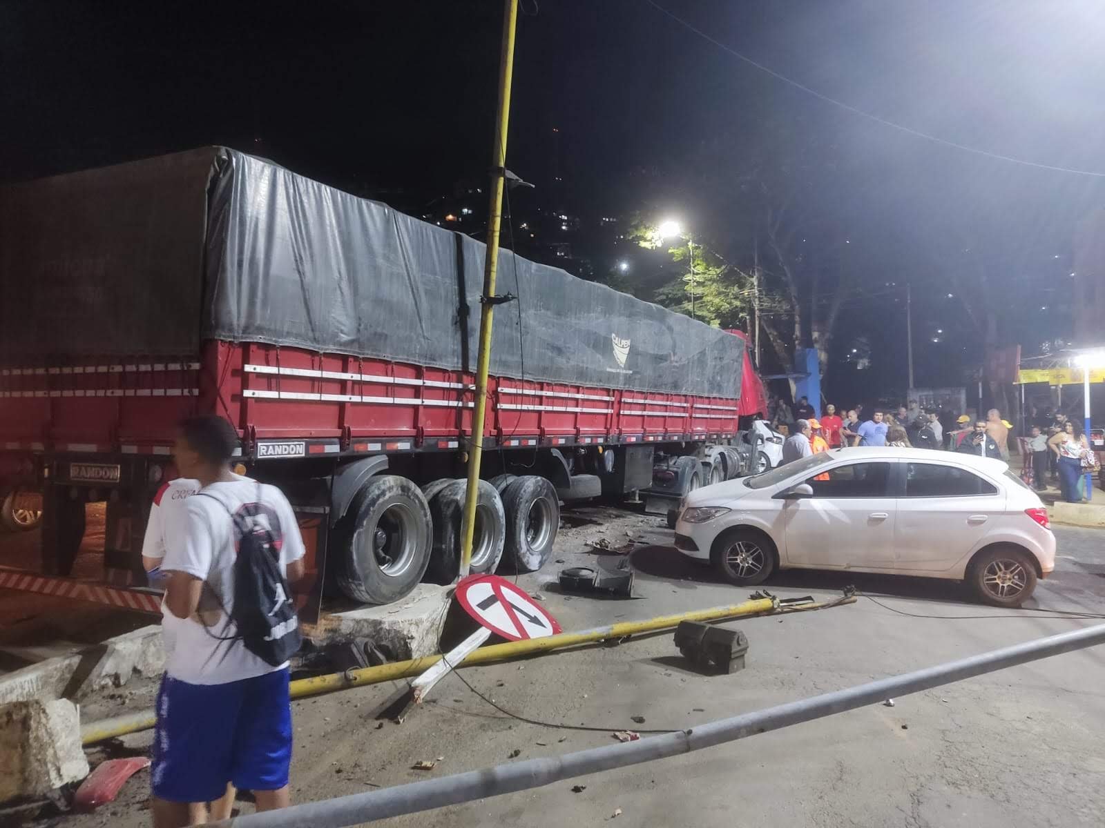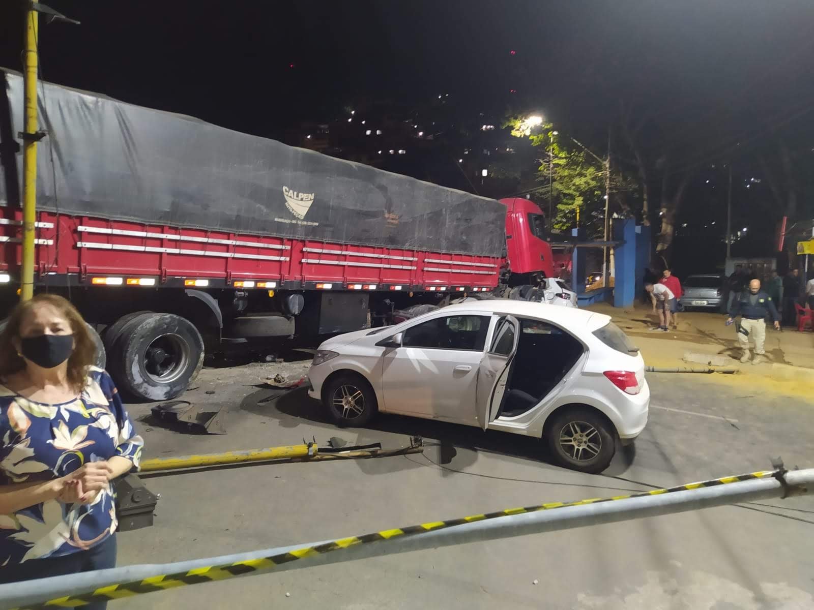 Dois carros estavam na rua Coronel José Pedro, aguardando para entrar na pista da rodovia. A carreta atingiu a frente de um Agile e arrastou um Ônix até a mureta do abrigo de passageiros. Os envolvidos relataram o susto, mas felizmente não tiveram ferimentos significativos. Segundo o Corpo de Bombeiros, todos dispensaram atendimento médico.