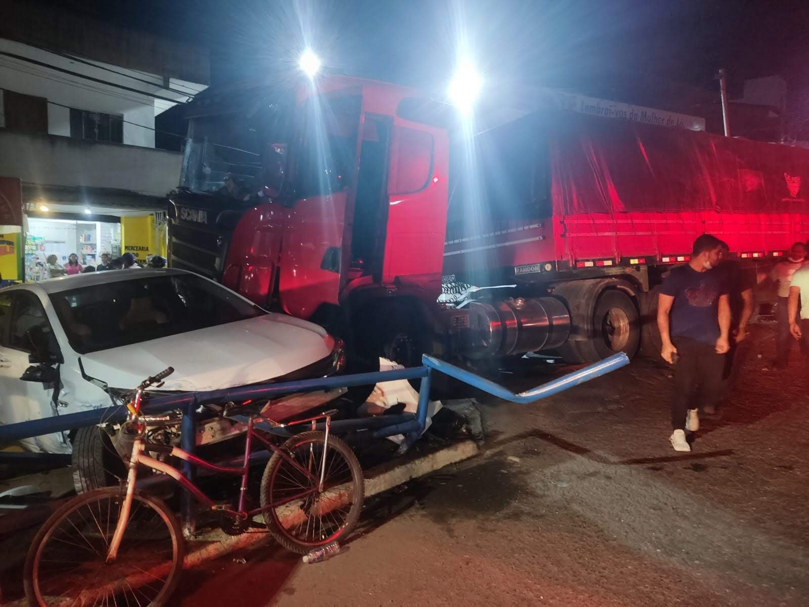 MANHUAÇU (MG) - Uma carreta bateu em dois veículos no km 34 da BR-262, próximo à entrada do bairro Alfa Sul, na região central de Manhuaçu. Apesar do grande susto e dos prejuízos, ninguém se feriu. O Corpo de Bombeiros e a Polícia Rodoviária Federal atenderam o acidente na noite desta quinta-feira, 23/06.