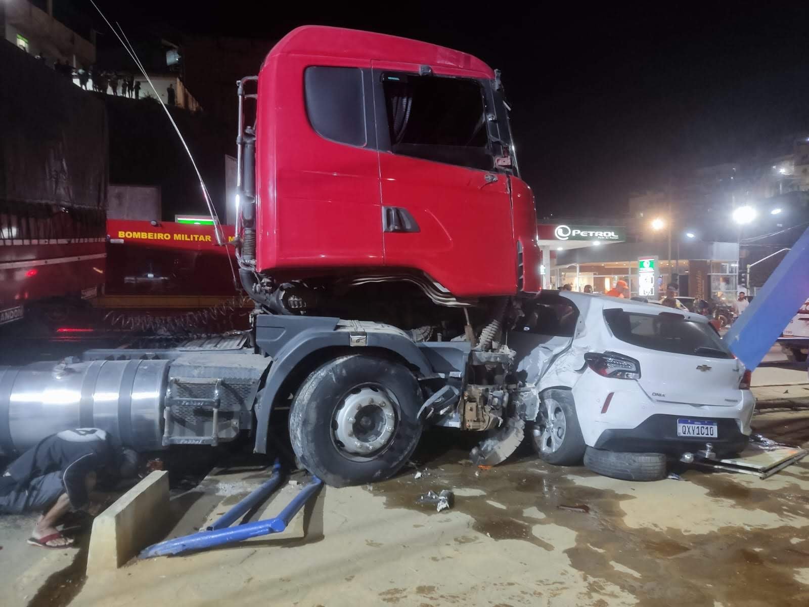 A carreta com placa de Matipó apresentou falha mecânica por volta de 17h30. O motorista parou no acostamento, desembarcou e foi verificar o que havia acontecido. Nesse intervalo, a carreta perdeu o sistema de freios e desengrenou, descendo no sentido BR-262 para Realeza.
