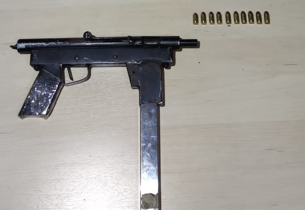 Após a saída dos militares do local onde o autor foi preso, uma equipe PM deslocou para fazer uma ocupação e, enquanto realizavam o patrulhamento, avistaram dois indivíduos, que evadiram com a presença policial, abandonando para trás uma submetralhadora de fabricação artesanal, calibre 380, a qual foi apreendida.
