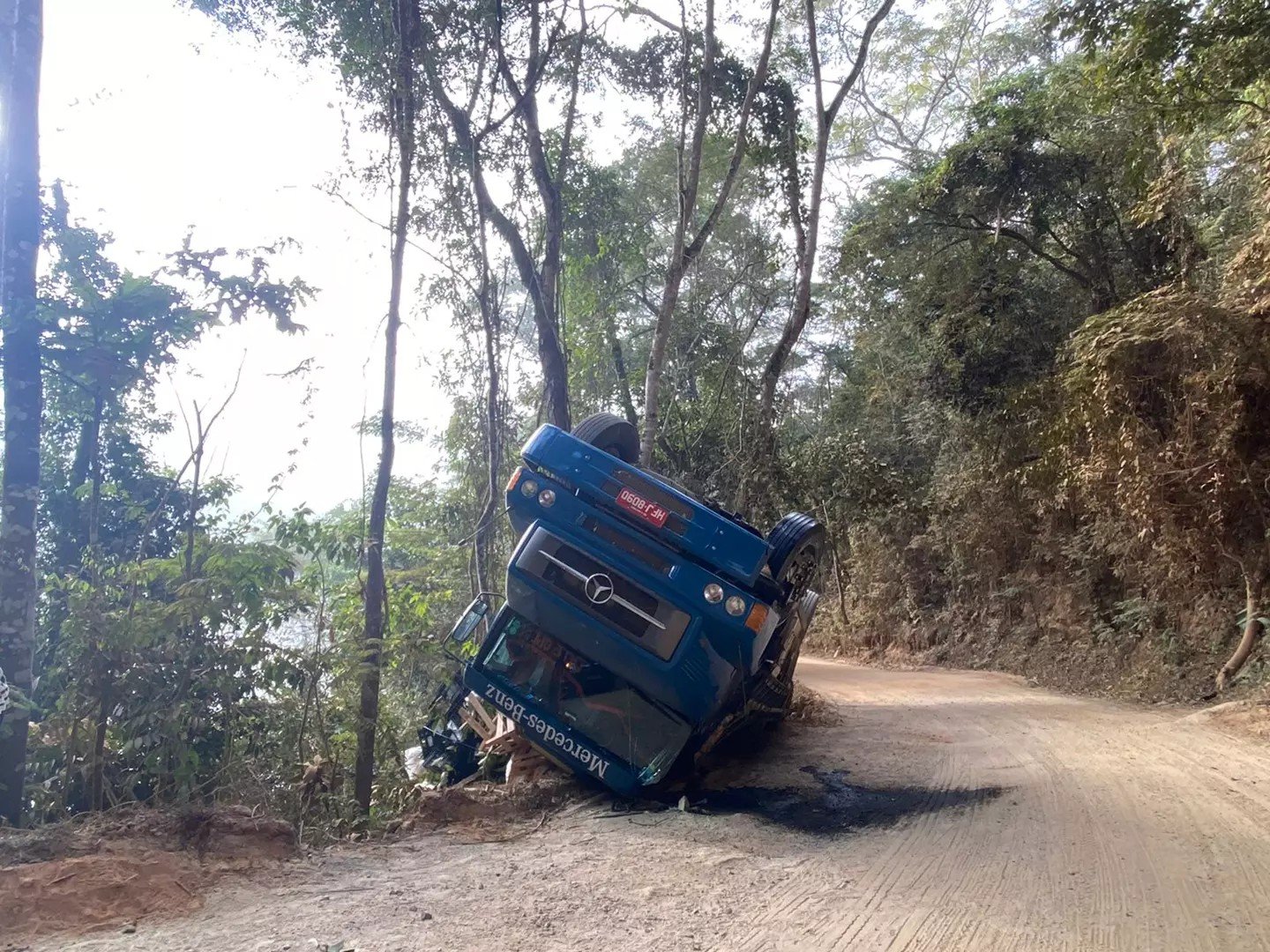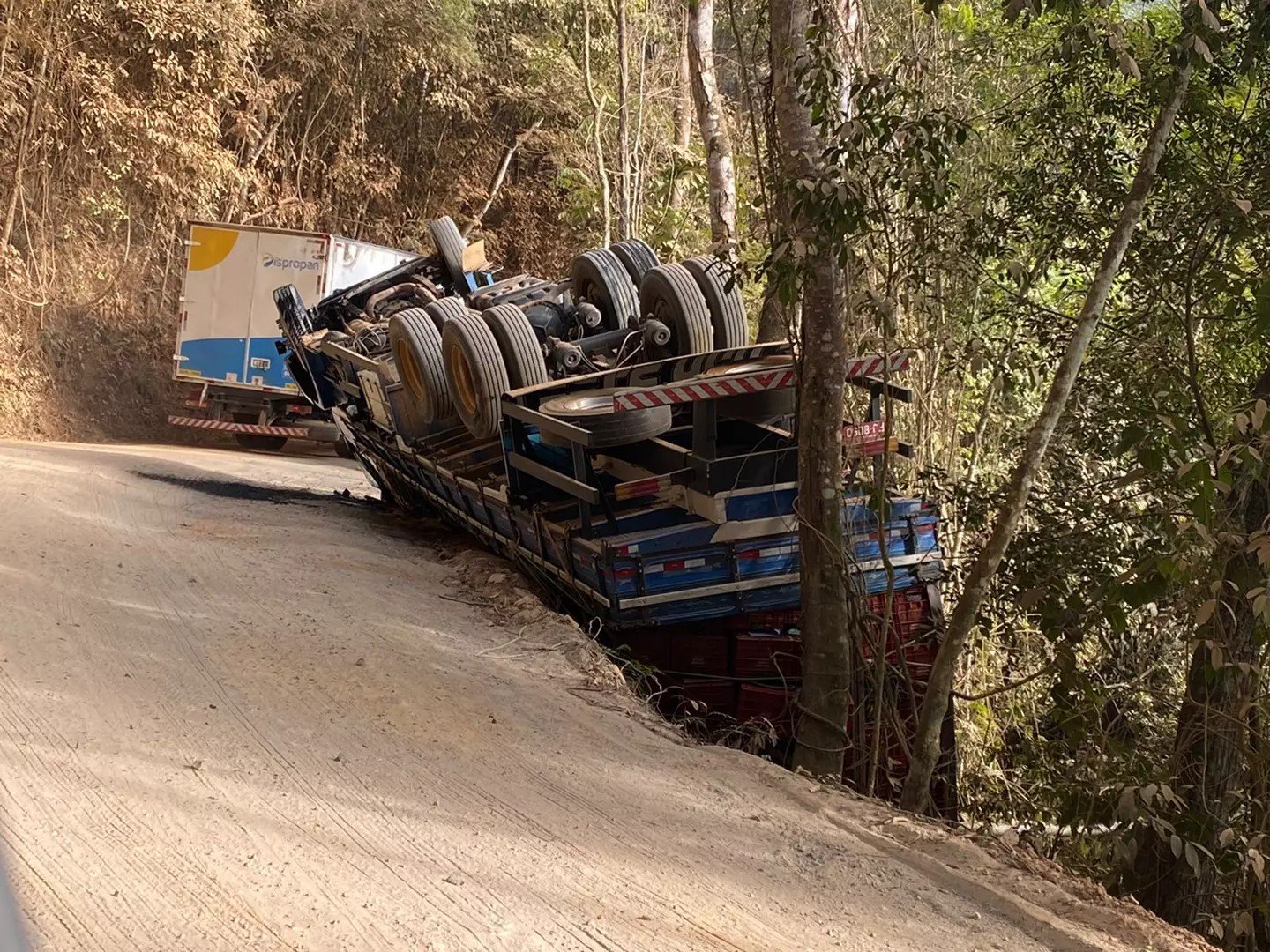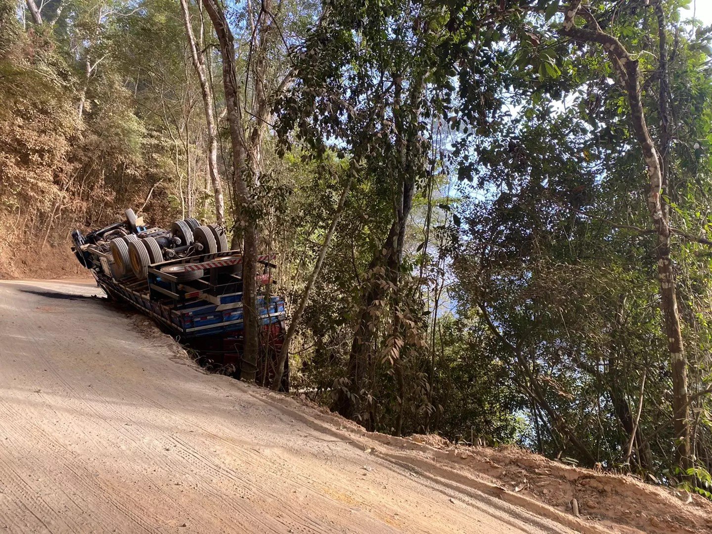 Segundo informações apuradas, o veículo seguia sentido Ipanema/Caratinga, quando o condutor perdeu o controle numa curva e tombou o caminhão.