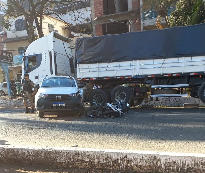 MANHUAÇU (MG) - Acidente automobilístico envolvendo moto e caminhonete ocorreu na manhã desta quinta-feira, 07/07, na BR-262, no perímetro urbano de Manhuaçu.