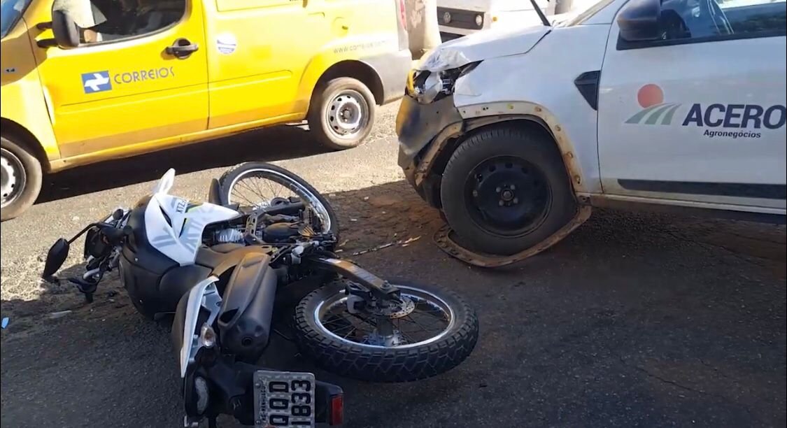 Equipe do Corpo de Bombeiros compareceu ao local e prestou socorro ao motociclista que, com ferimentos graves, foi encaminhado para atendimento no setor de urgência e emergência do Hospital César Leite.