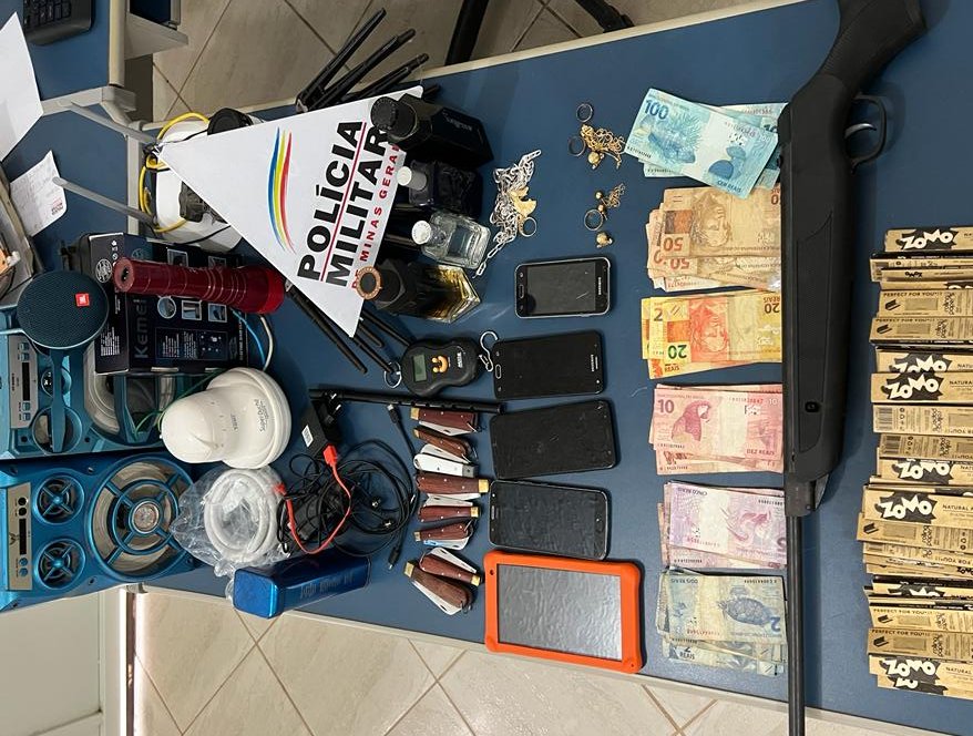 Após sua prisão, diversos materiais furtados foram localizados pela PM na residência dele. Foram recuperados R$ 1.207,00, uma espingarda de pressão, três caixas de som, quatro celulares; um tablet, um roteador, uma mão de apanhadeira com suporte, oito canivetes, 54 caixinhas de folhas ultrafinas (utilizadas para embalar drogas), três cordões dourados, dois cordões de prata, três pares de brincos dourados, três alianças, um anel, três frascos de perfume, uma lanterna, quatro carregadores de celular, uma flauta de sopro irlandesa, uma máquina de corte de cabelo, um chuveiro, uma mochila e uma balança.