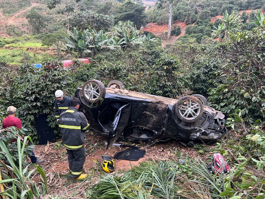 IÚNA (ES) - Uma equipe do Corpo de Bombeiros atendeu a uma ocorrência de capotamento de um veículo, na manhã deste domingo (31/07), na ES-168, no município de Iúna. A informação era de que uma pessoa estava presa às ferragens. O carro foi parar no meio de uma plantação de café.