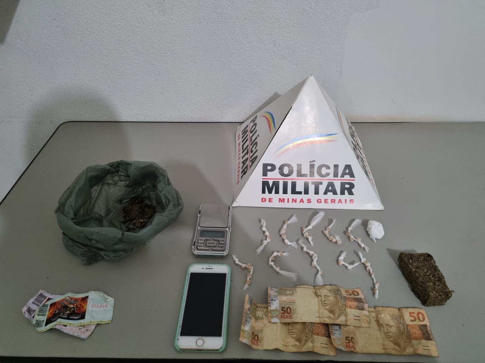 Durante o patrulhamento, a equipe policial avistou indivíduo e procedeu a abordagem, porém, naquele momento nada de ilícito foi encontrado com ele. Por possuir diversas denúncias de tráfico de drogas, foi realizada buscas em sua residência, sendo localizadas 50 pedras de crack, 01 tablete e 01 porção de maconha, 01 porção de cocaína, 01 celular, 02 balanças de precisão e R$ 150,00 em espécie.