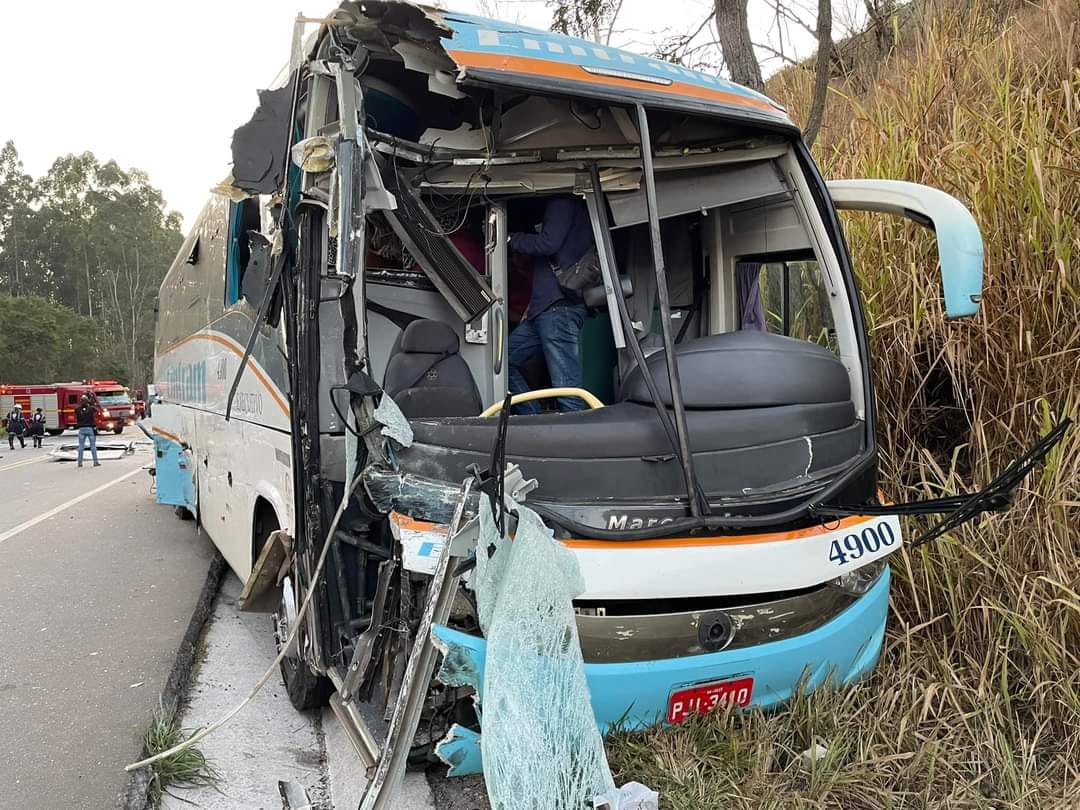 “Eu vinha descendo e o caminhão invadiu a pista. Nós íamos bater de frente, eu tentei tirar e não teve jeito. Na frente do ônibus só sobrou minha parte, não ia sobrar nada. Primeira vez que aconteceu um acidente comigo, mas quem está na estrada tem que ficar preparado né?!”