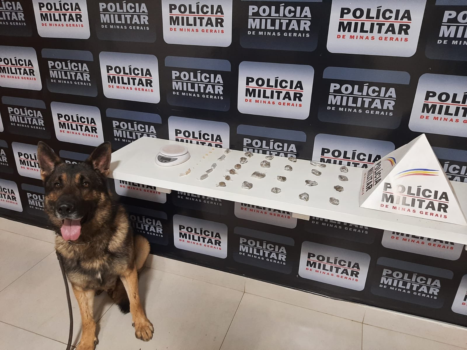 MANHUAÇU(MG) - Durante operação Batida Policial, no bairro Santa Terezinha, neste domingo, 07/08 foi realizada aplicação do cão de faro Aquiles em locais comumente denunciados por serem utilizados para esconder drogas ilícitas.
