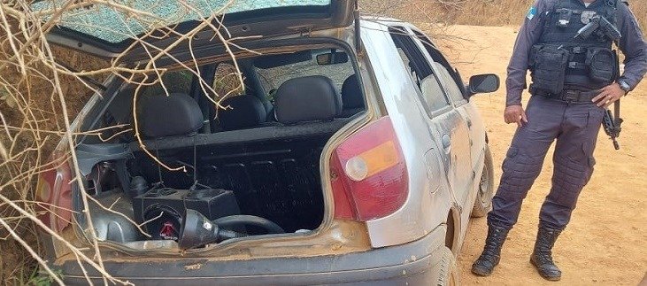 Foi dado início à perseguição e o Fiat Pálio, com placa de Rio das Ostras, voltou a ser interceptado por outra equipe do 29º BPM na rodovia sentido ao distrito de Ourânia, quando desviaram para uma estrada vicinal, só parando após o motorista perder o controle da direção e se chocar contra o barranco, na altura da localidade da Ponte Alta, onde acabaram contidos, já com o apoio da Polícia Rodoviária Estadual e de posse de todo o material roubado.