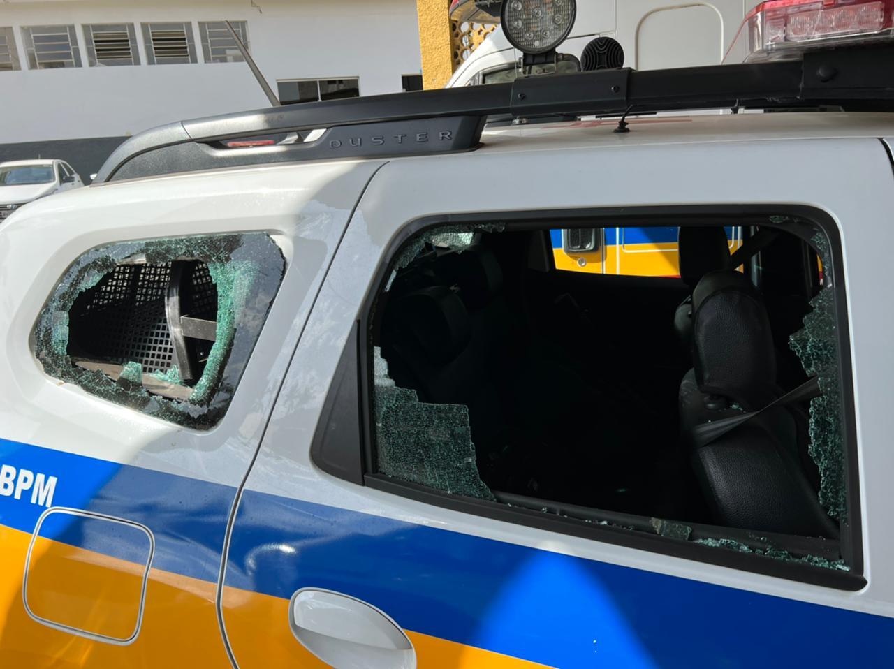 Os policiais militares constataram que os autores haviam quebrado dois vidros da viatura com pedras, bem como amassaram a parte superior de umas das portas.
