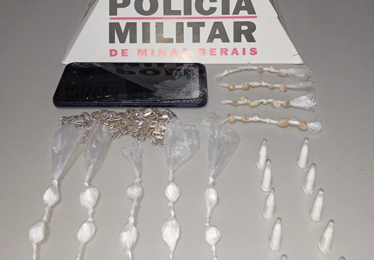 Durante a busca pessoal, foram encontradas 24 pedras de crack, 10 pinos e 15 papelotes de cocaína.